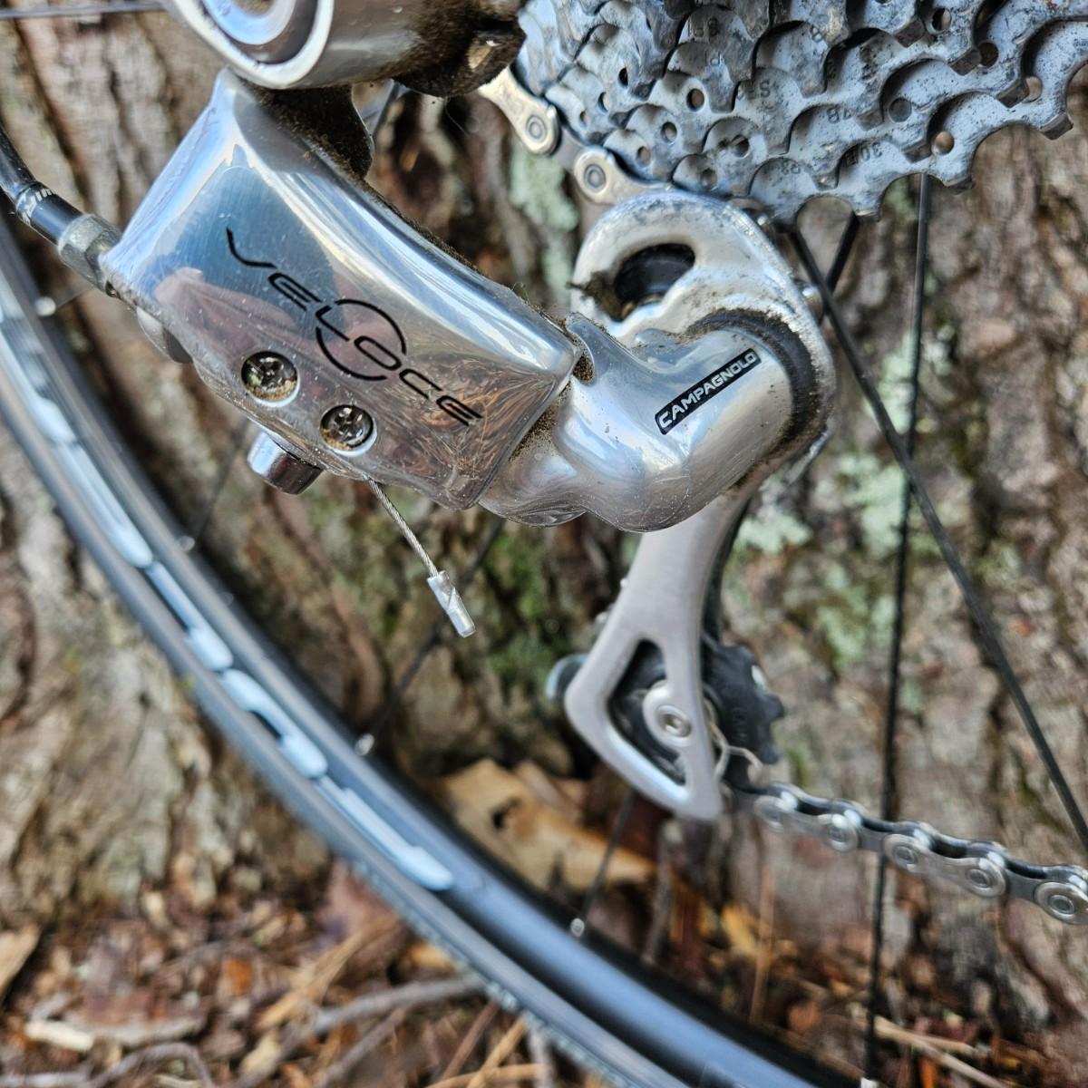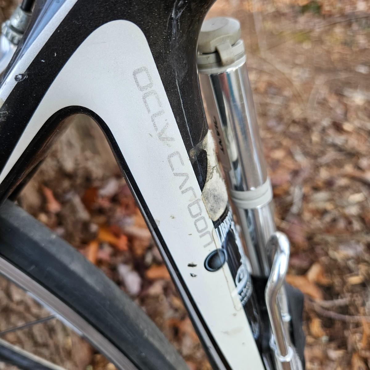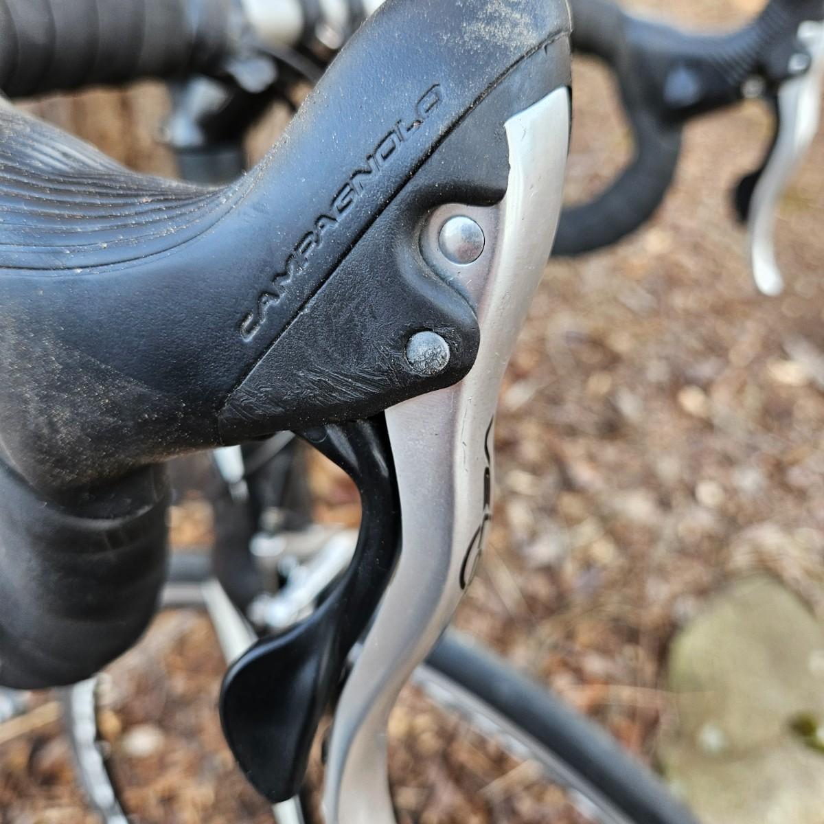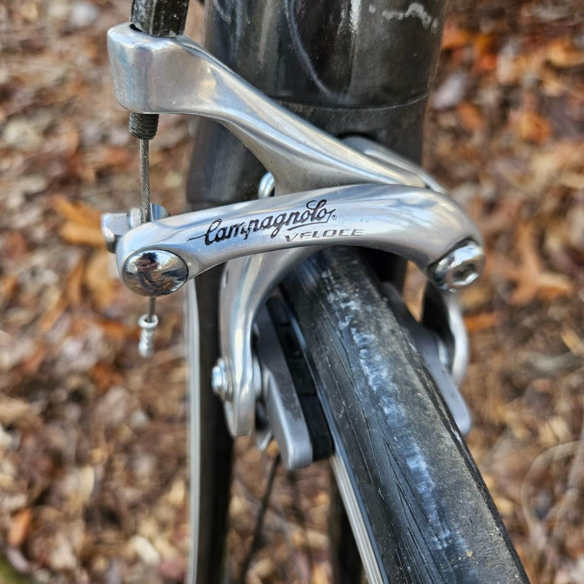 A Trek Madone 5.2 OCLV carbon frame road bike with Campagnolo derailer, shifters and brakes. It has a 3 x 10 gearing with a FSA crank arms and rings. The rims are Fulcrum Racing 7. It comes with a small tool bag and air pump. The top tube measures approximately 20.5" and the seat tube measures approximately 21.25". There are some minor blemishes associated with use, see attached pictures for more detail. Local pickup only