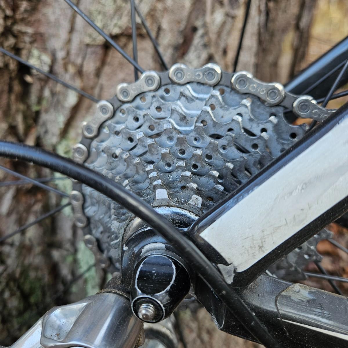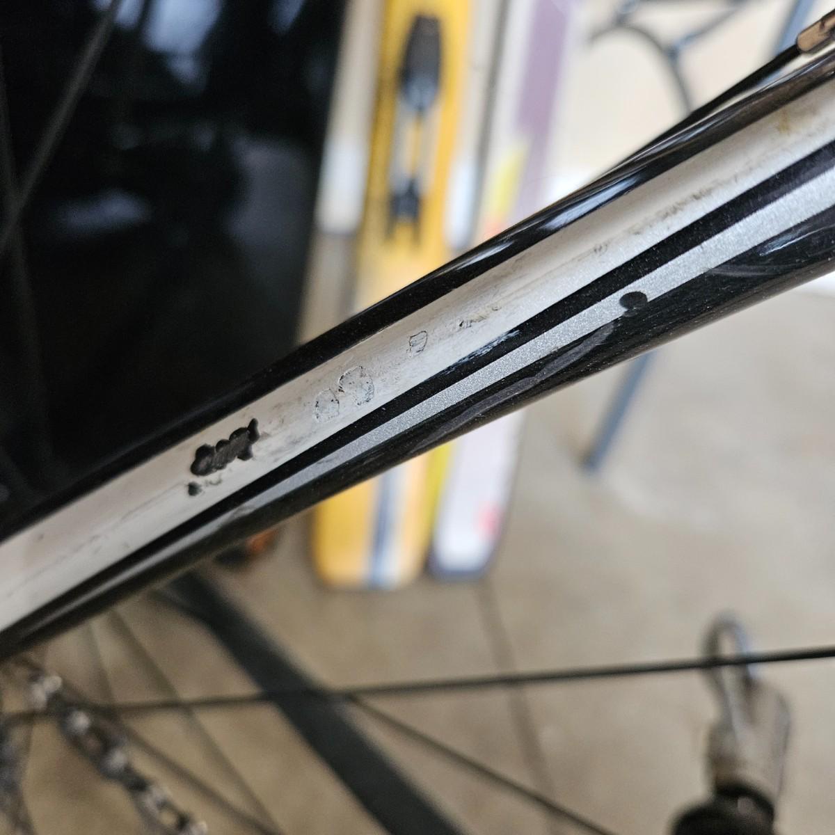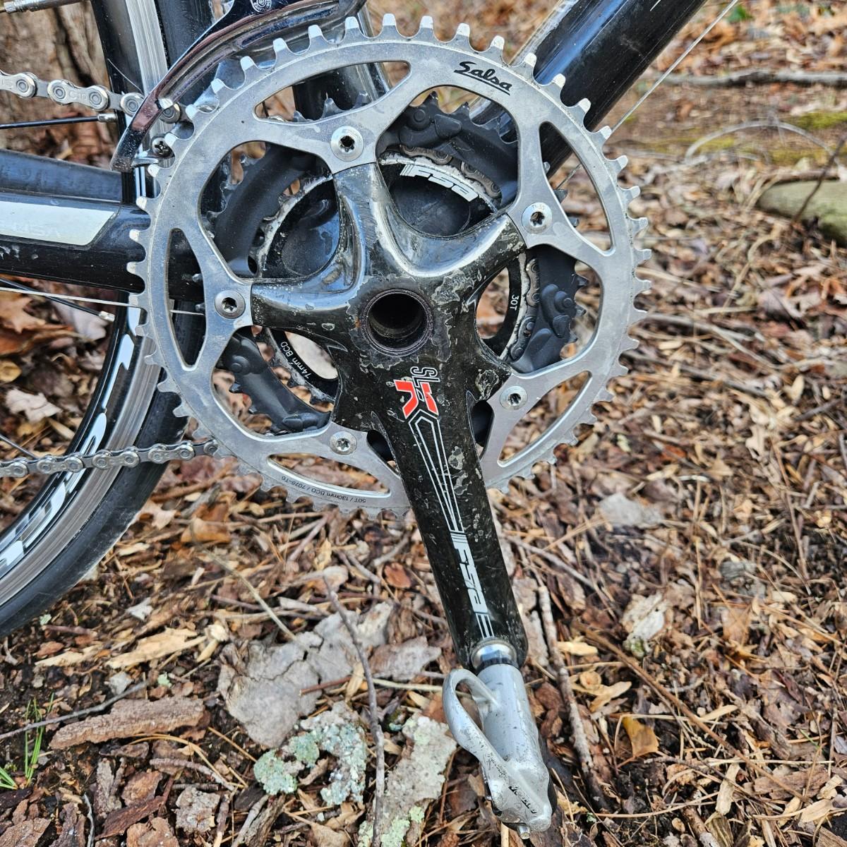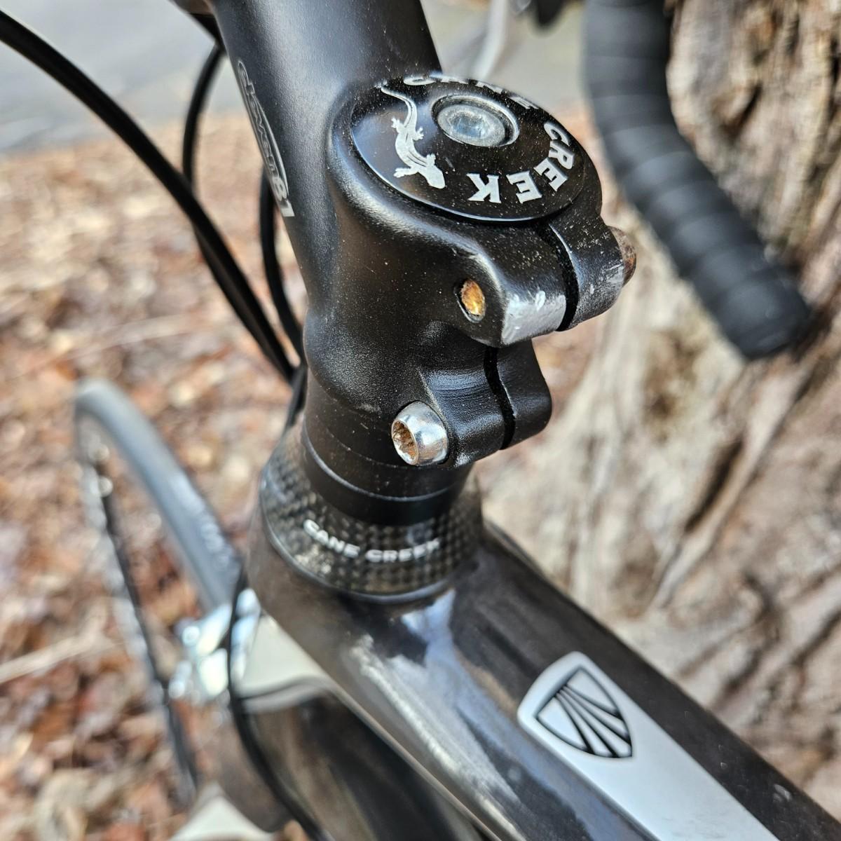 A Trek Madone 5.2 OCLV carbon frame road bike with Campagnolo derailer, shifters and brakes. It has a 3 x 10 gearing with a FSA crank arms and rings. The rims are Fulcrum Racing 7. It comes with a small tool bag and air pump. The top tube measures approximately 20.5" and the seat tube measures approximately 21.25". There are some minor blemishes associated with use, see attached pictures for more detail. Local pickup only