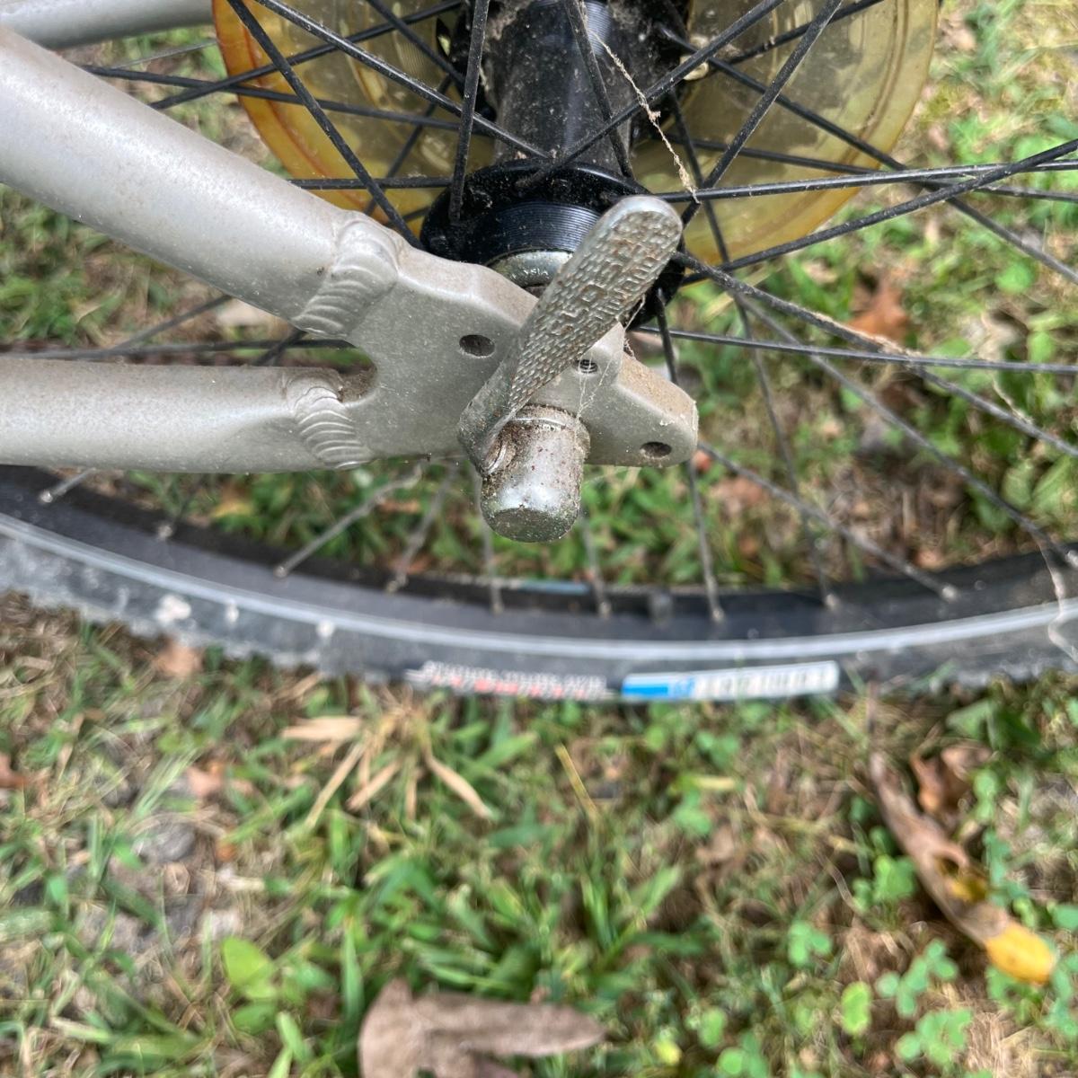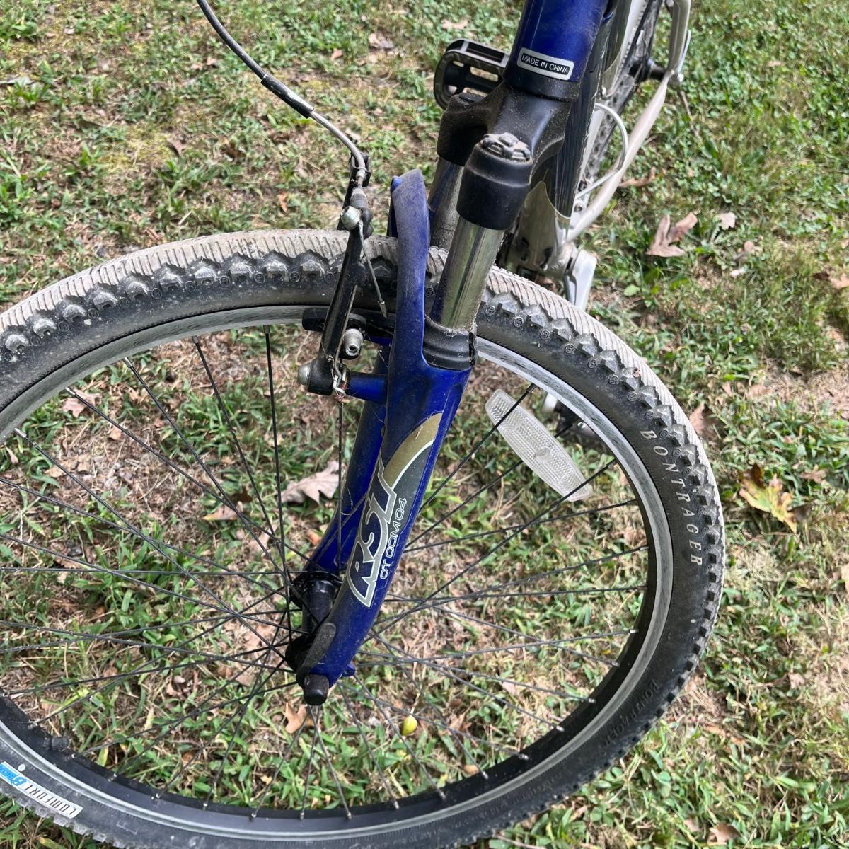 Lot includes a Trek Navigator 200 24 speed bicycle with Promax brakes, Shimano Alivio derailleur, Shimano C201 cranks, SRAM handle shifters and RST CT COM 04 forks with 26” x 1.95” tires (both are currently flat). Rubber fork seal on top has cracks, see pictures.