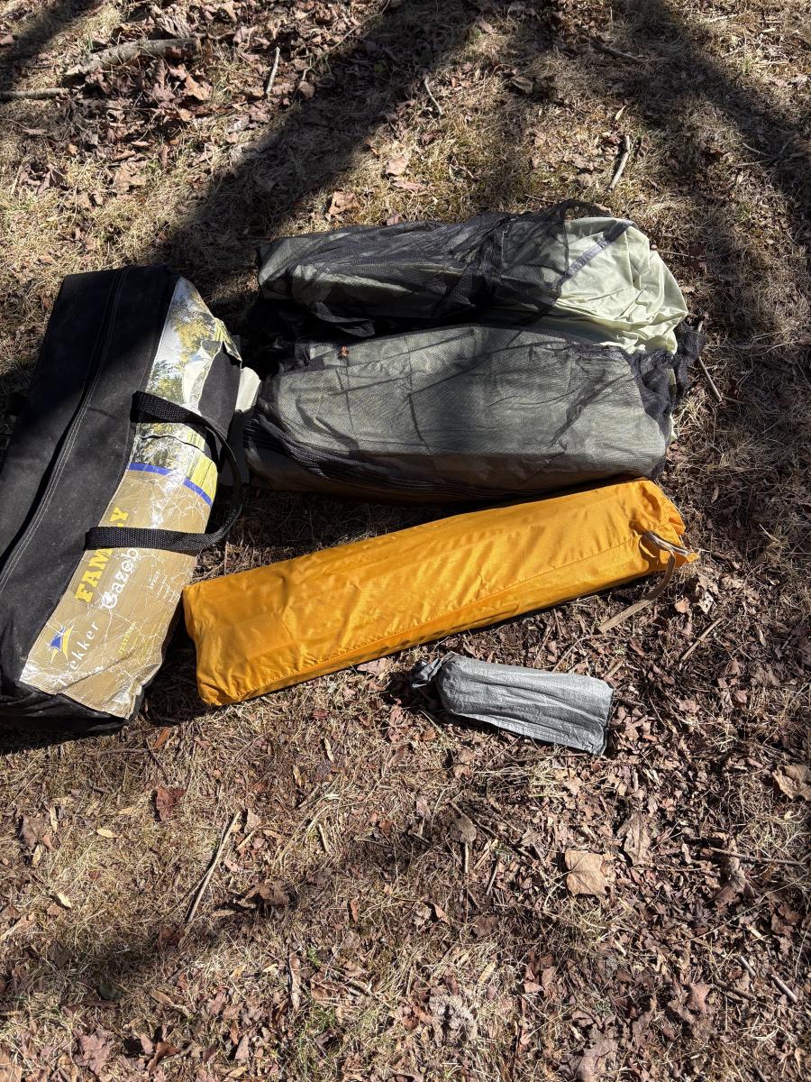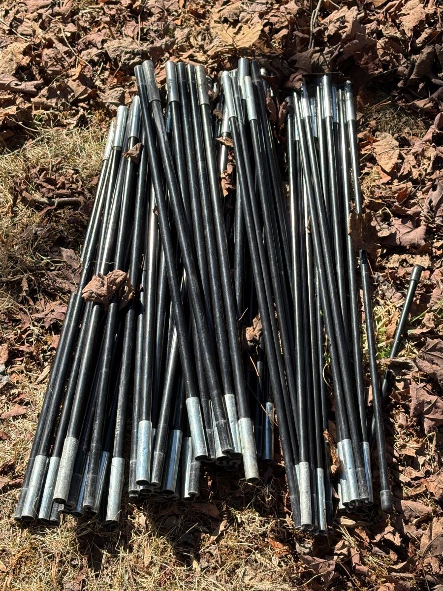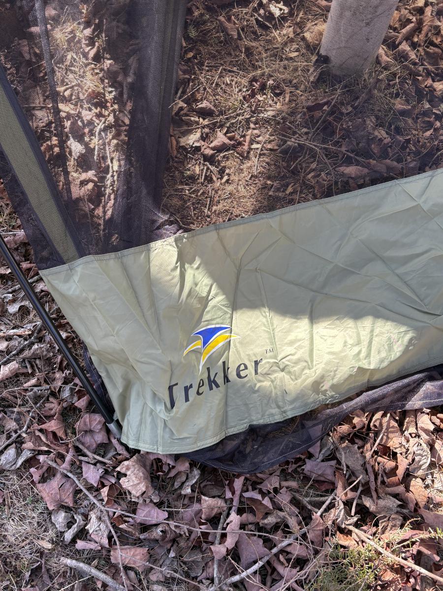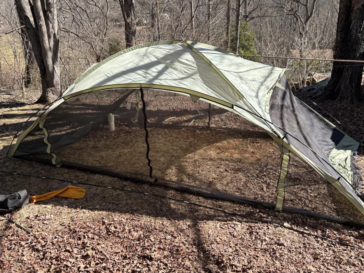 Four sided gazebo has two zip mesh entrances (zipper heads are corroded and did not move). Comes with roof and side poles plus stakes. 15’ x 15’ x 90”H. In good condition other than zipper issue.