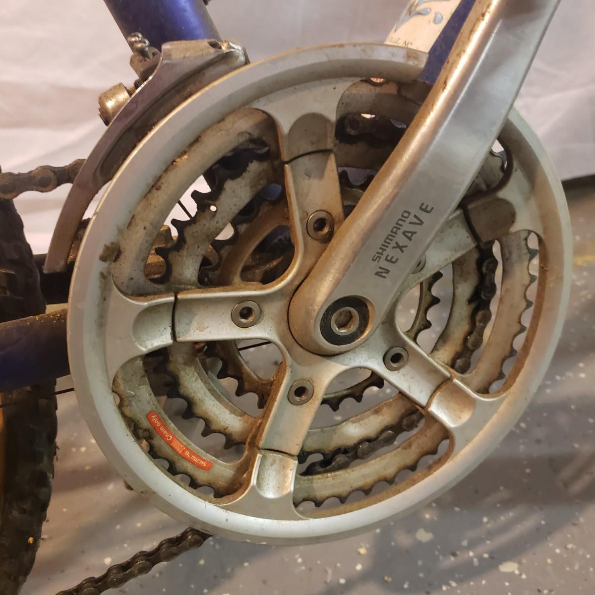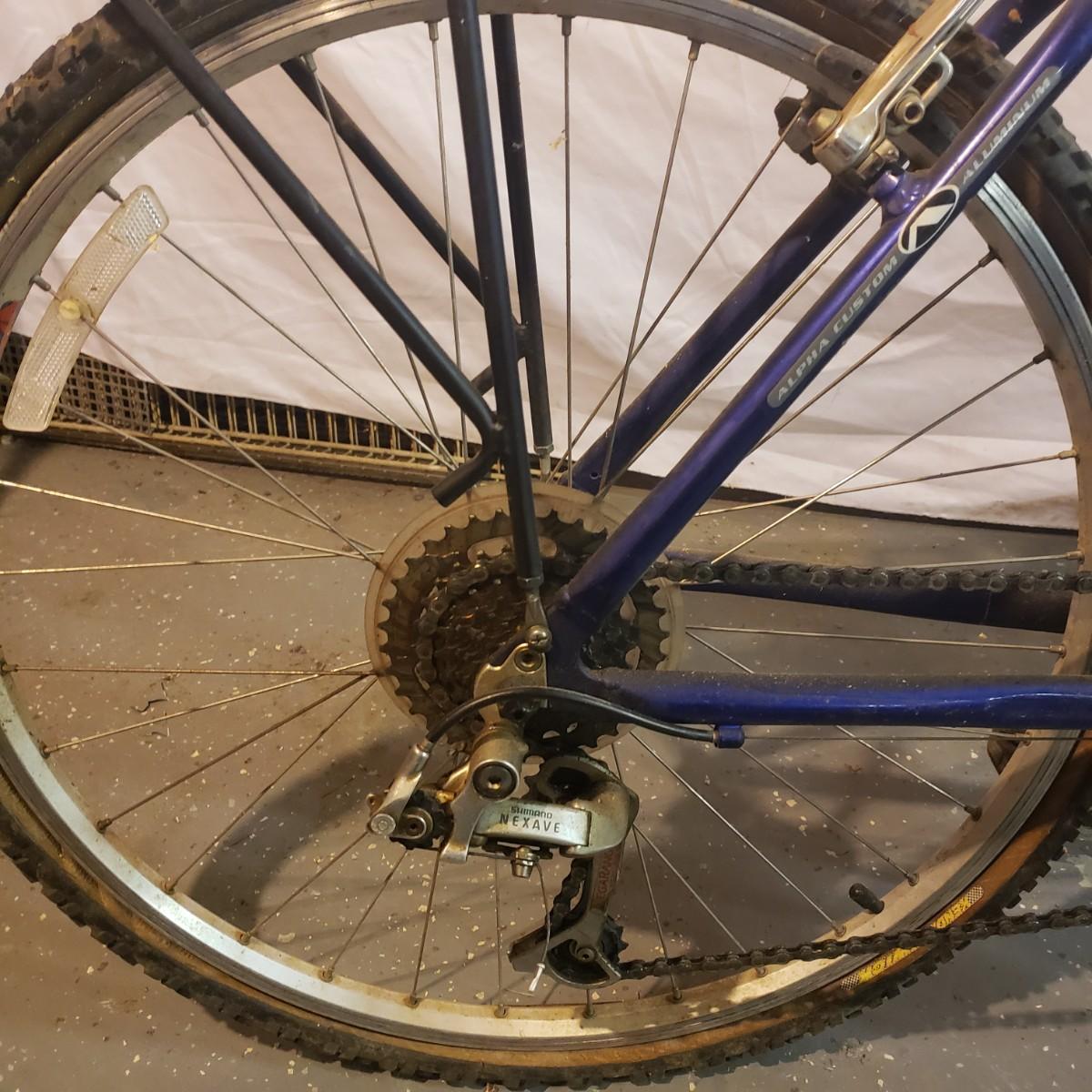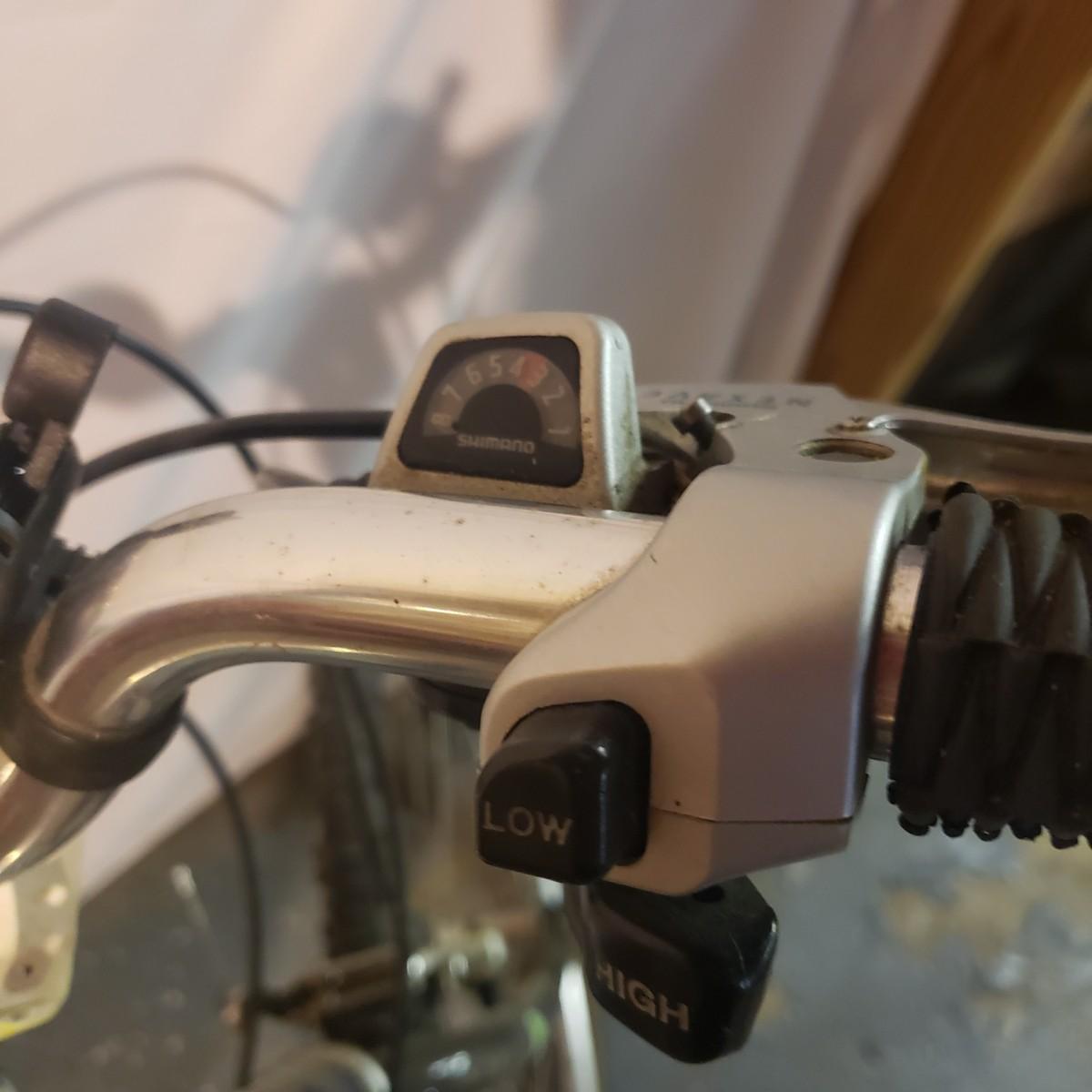 This is a Trek Navigator 400 eight gear bike. It comes with a back rack a gel Bell seat and a jingle bell! With a little love, you could be cruising! The frame is 18.5" according to the sticker on the frame. The tires are flat.