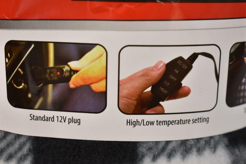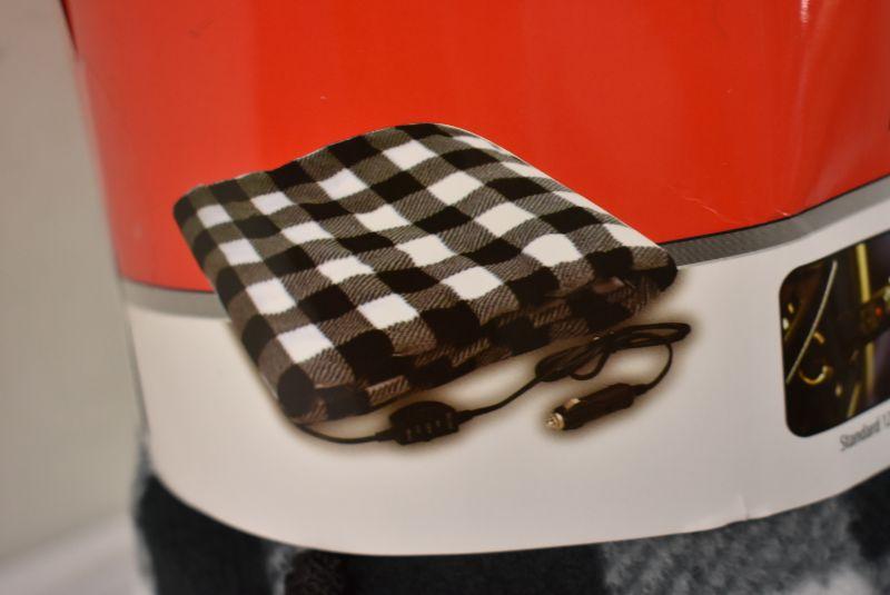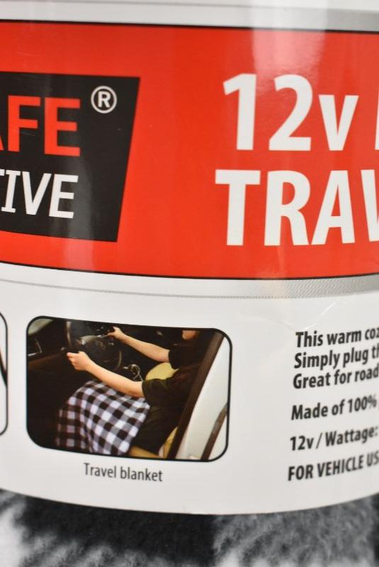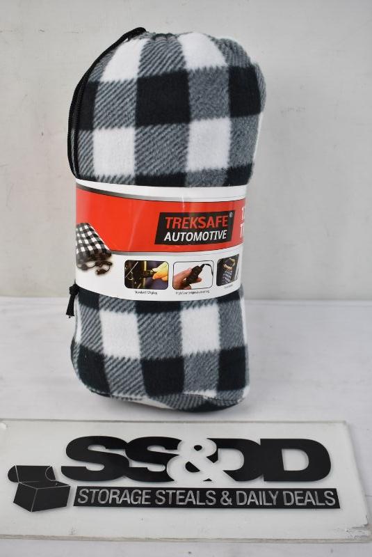 TREKSAFE 12-Volt Heated Travel Blanket, White & Black