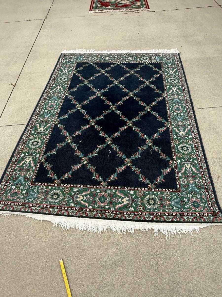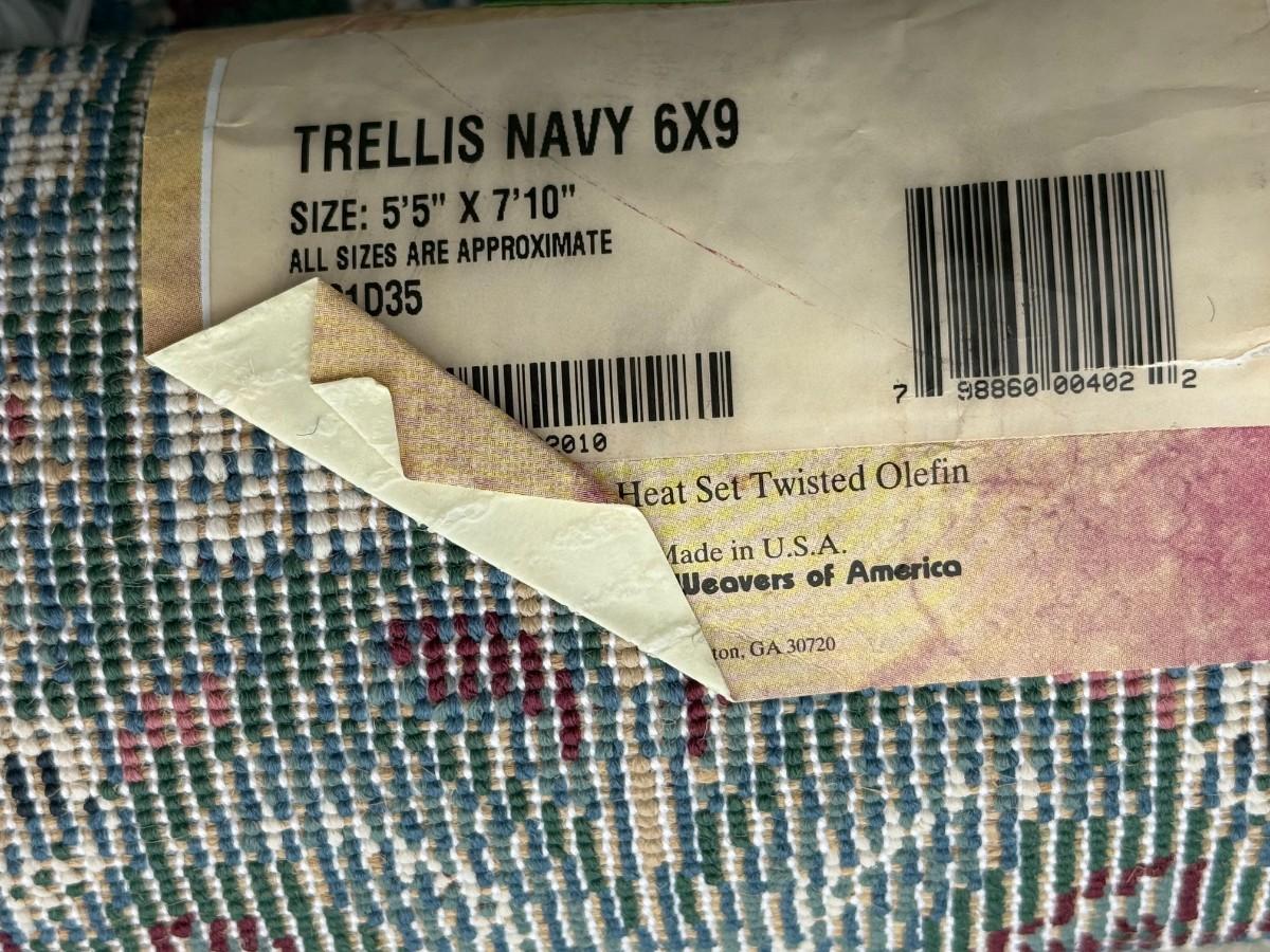 A contemporary trellis navy rug perfect for adding style and comfort to your living space, measuring 5'5" x 7'10".