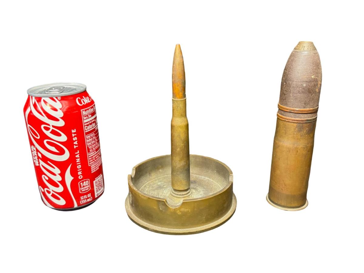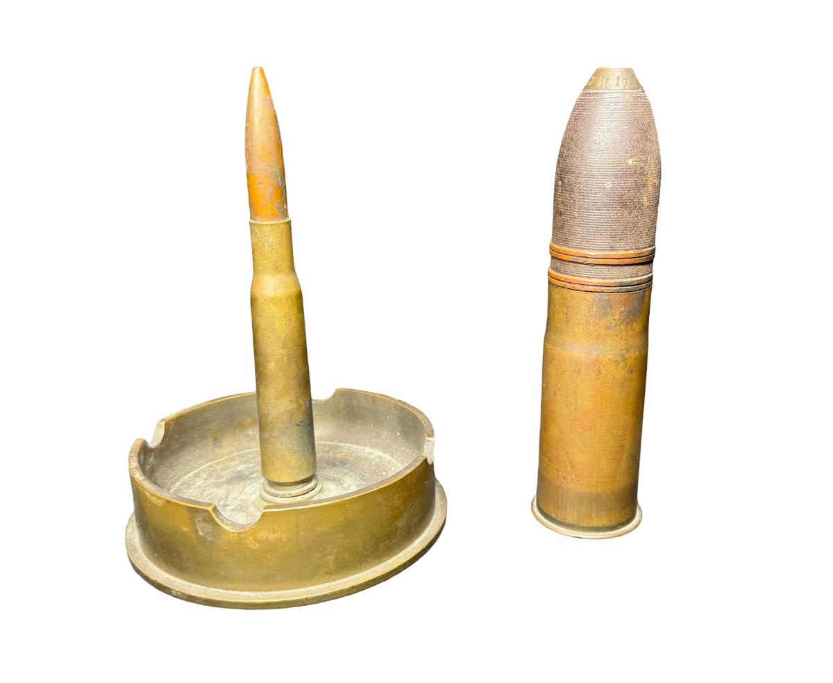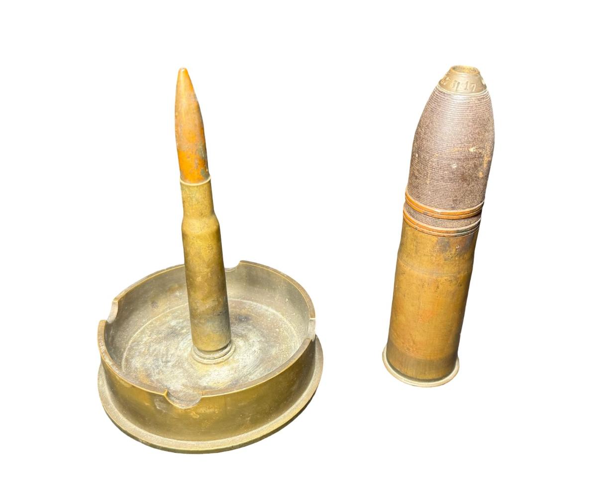 Includes an ashtray, and an inert ammo round. Total of two pieces. [JL]