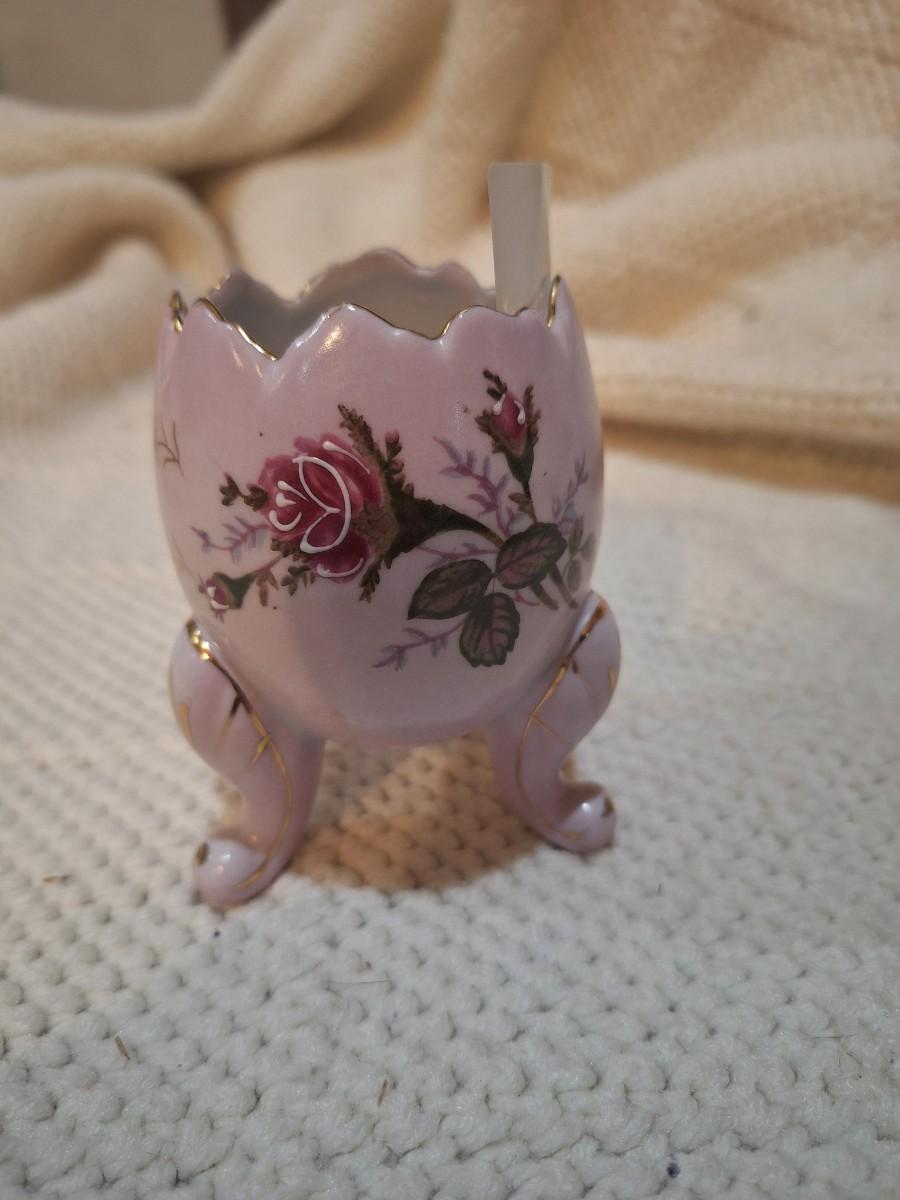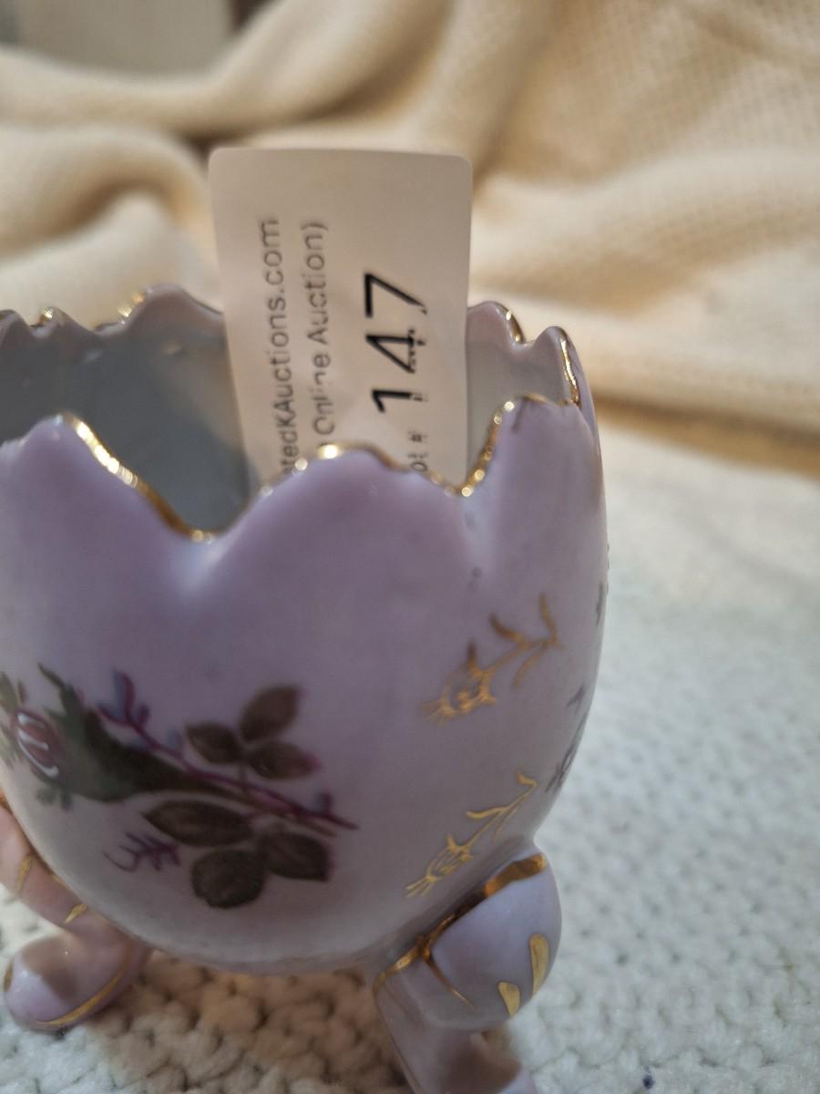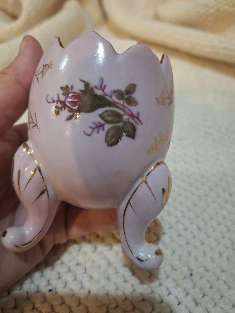 vintage Napcoware cracked egg footed planter vase with pink rose pattern and gold accents