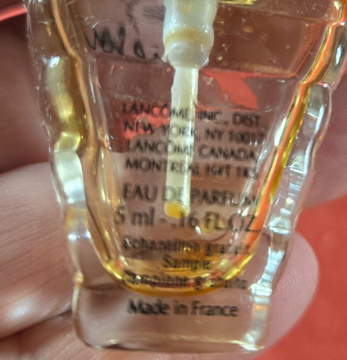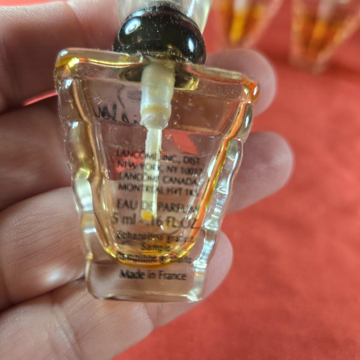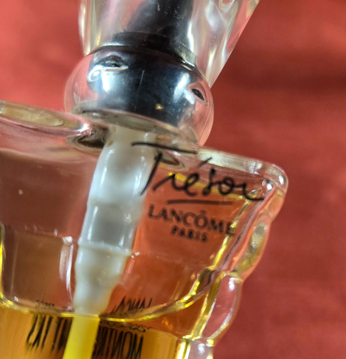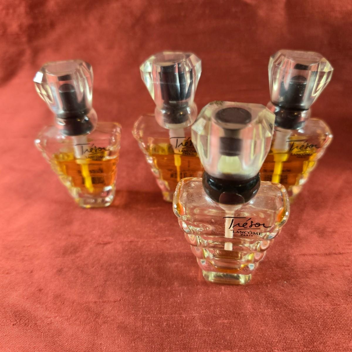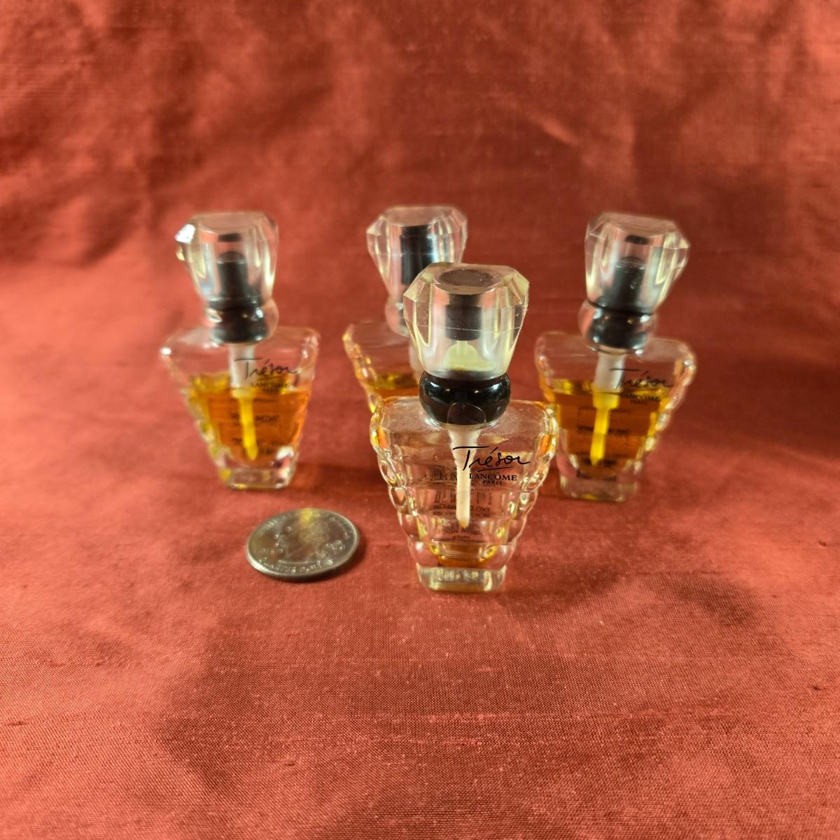 This auction is for a lot of Tre'sor Parfumes by Lancome of Paris. This includes 4 Tre'sor Parfume salesmen samples by Lancome, Paris - Made in France. - 5 ml. Three bottles are about 3/4 full, one is empty. (Some people collect just the bottles.) They are about 2.5 inches tall.