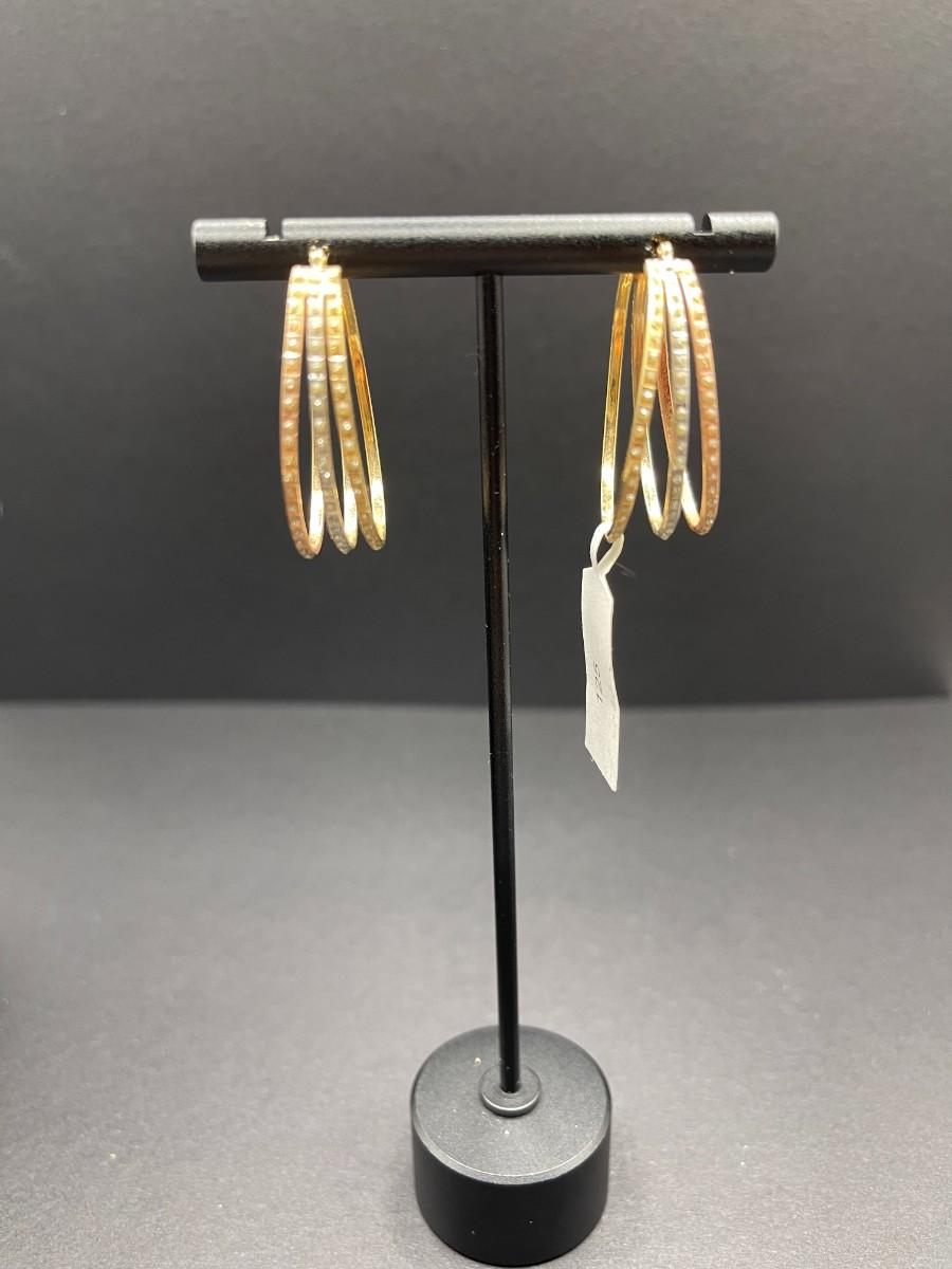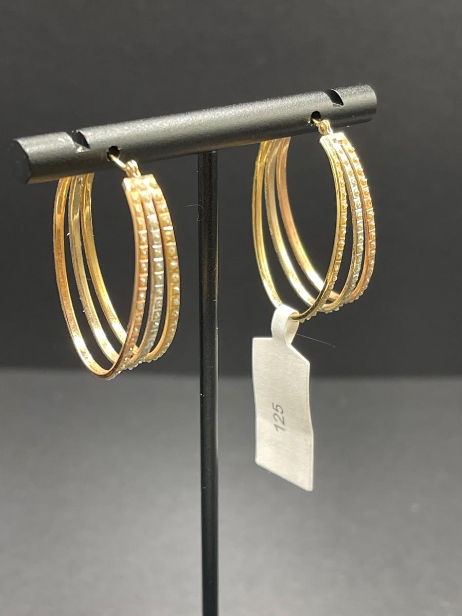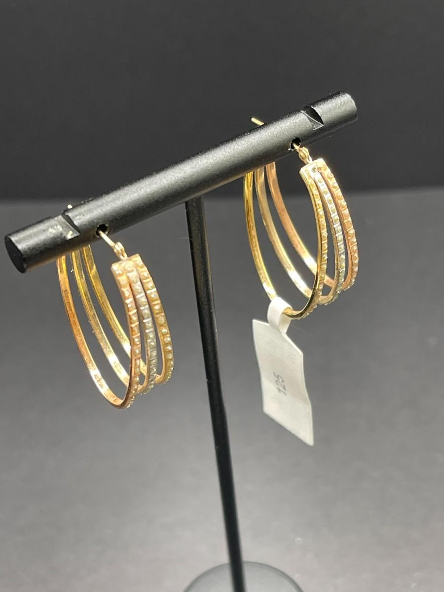Tri color 14k gold hoop earrings with faux diamonds. 2.48 total grams.