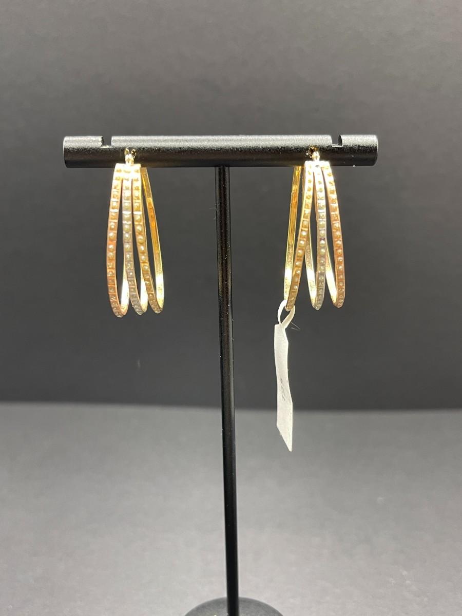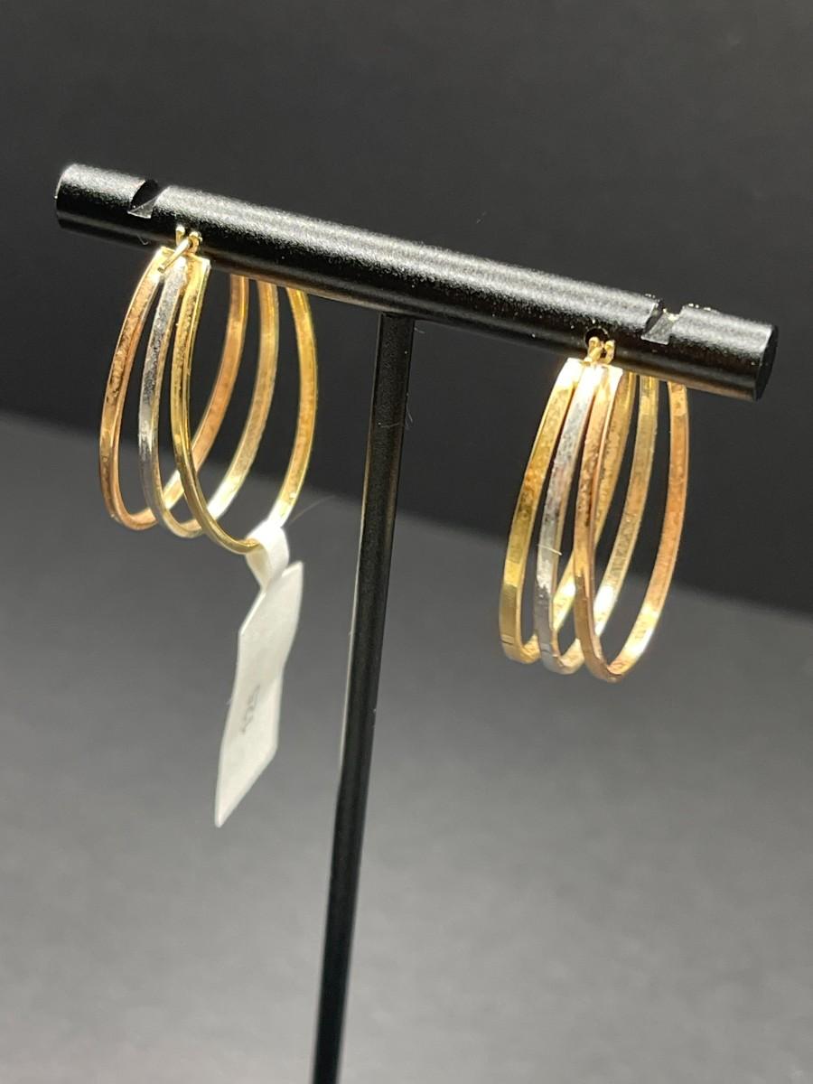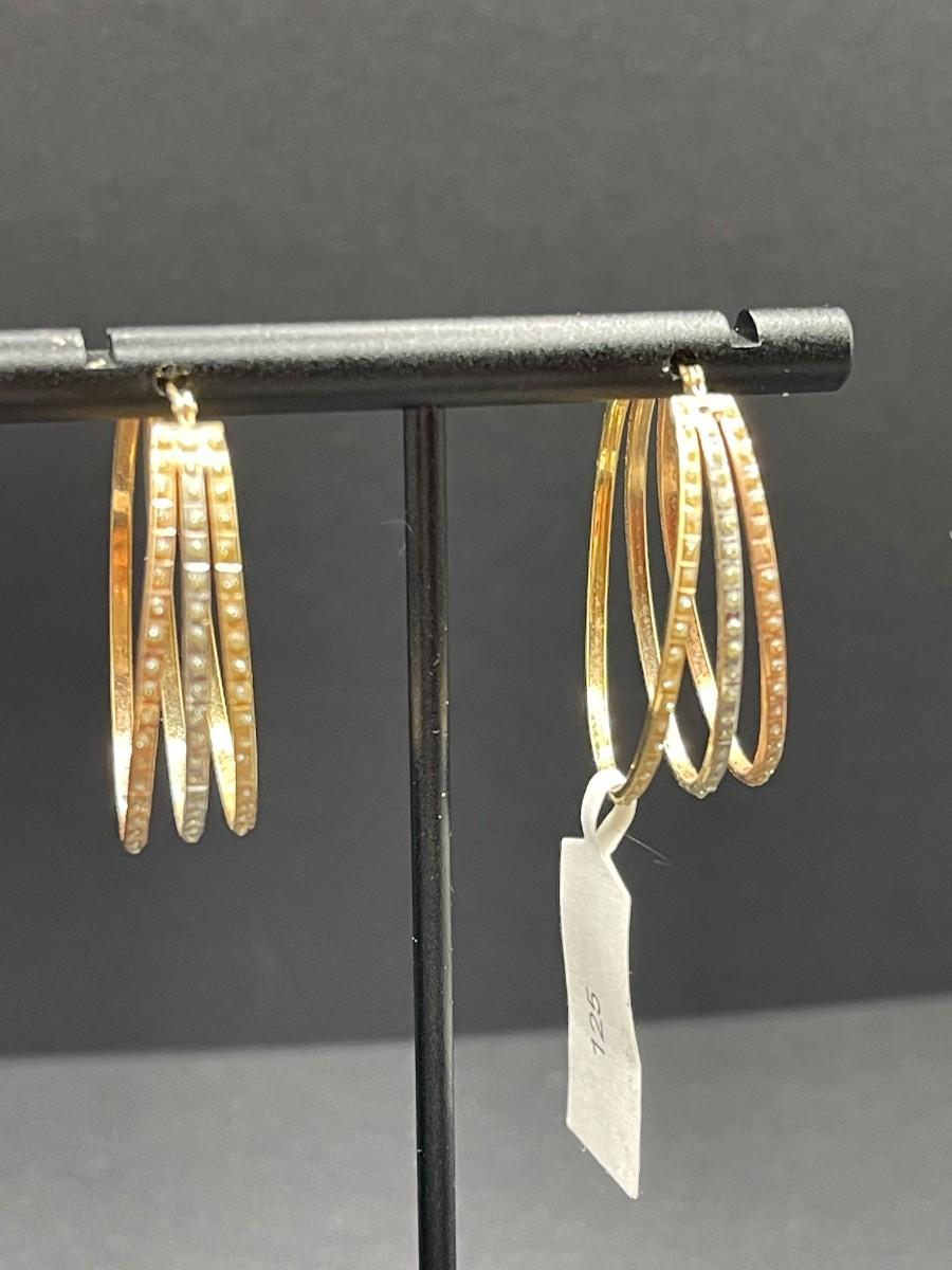 Tri color 14k gold hoop earrings with faux diamonds. 2.48 total grams.