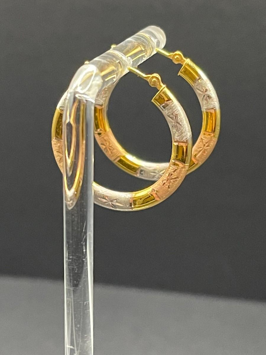 Tri Color 14K Gold Hoop Earrings