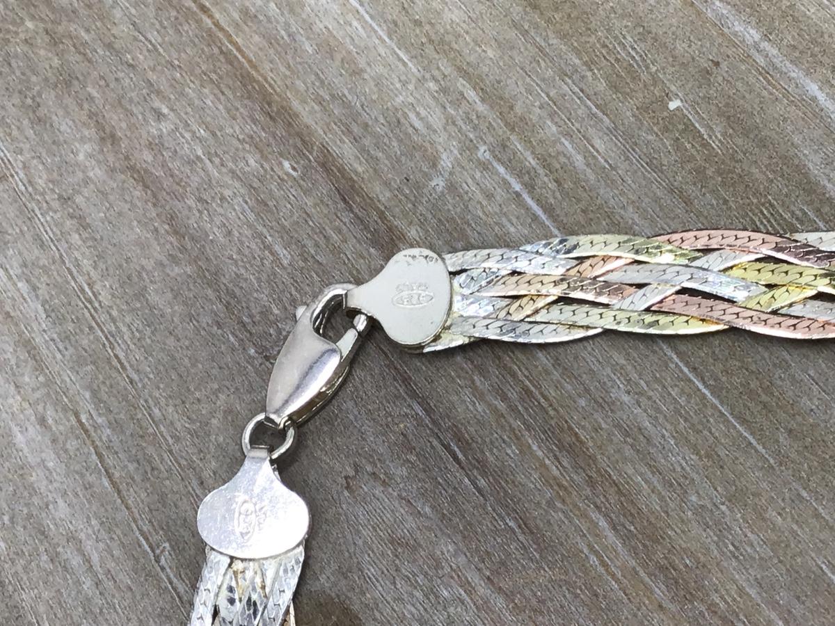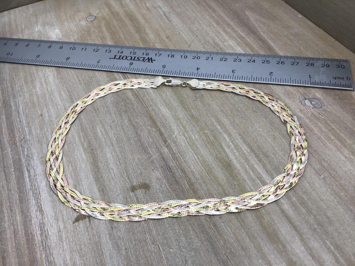 Tri Color Braided Sterling Silver Marked 925 ITALY Necklace