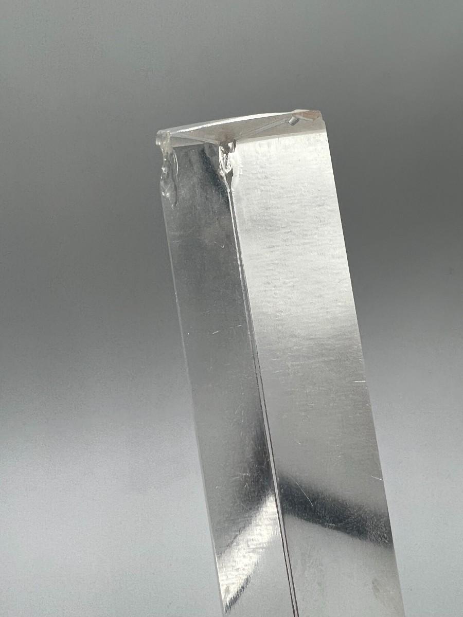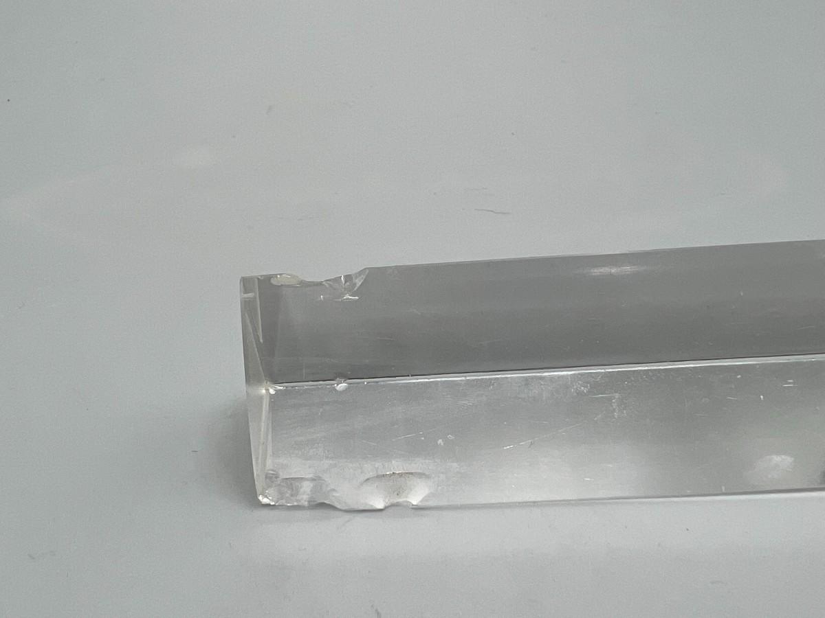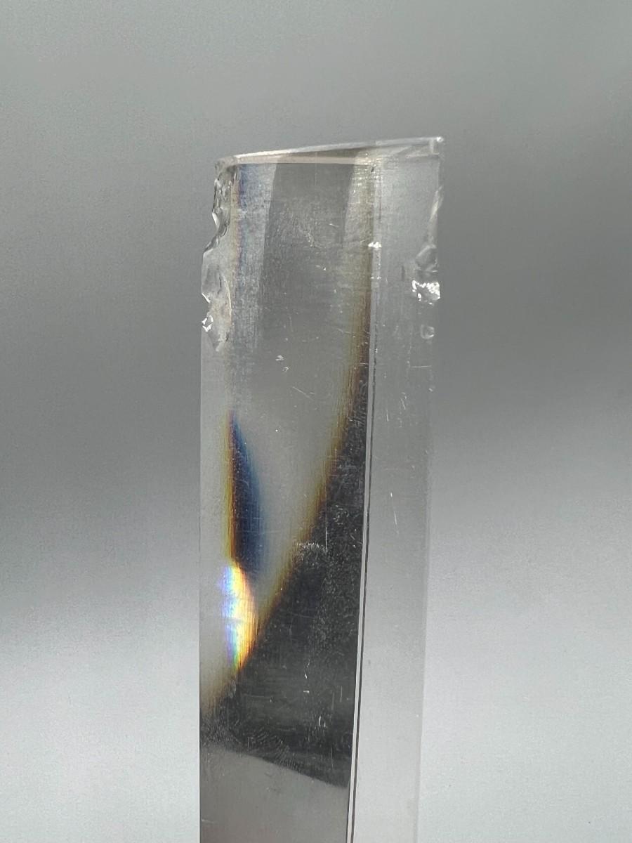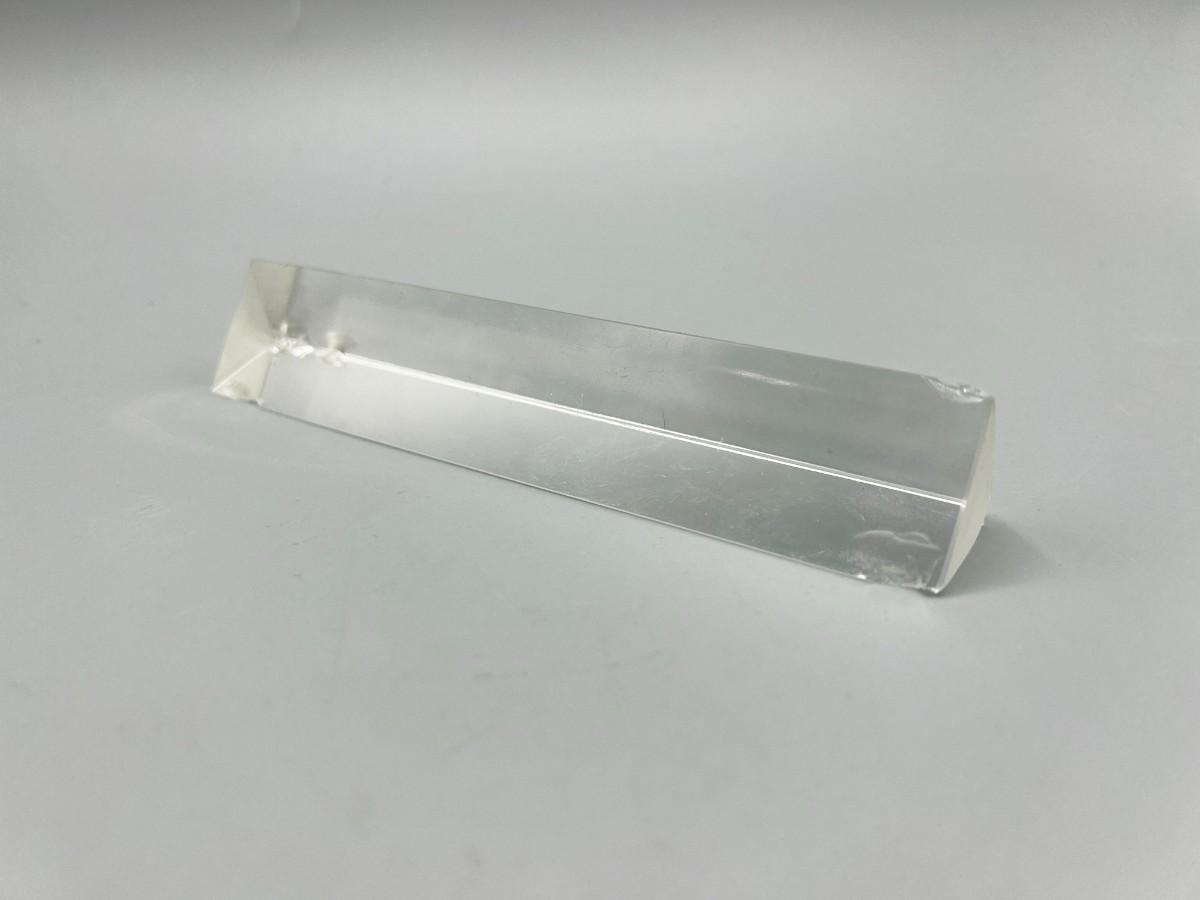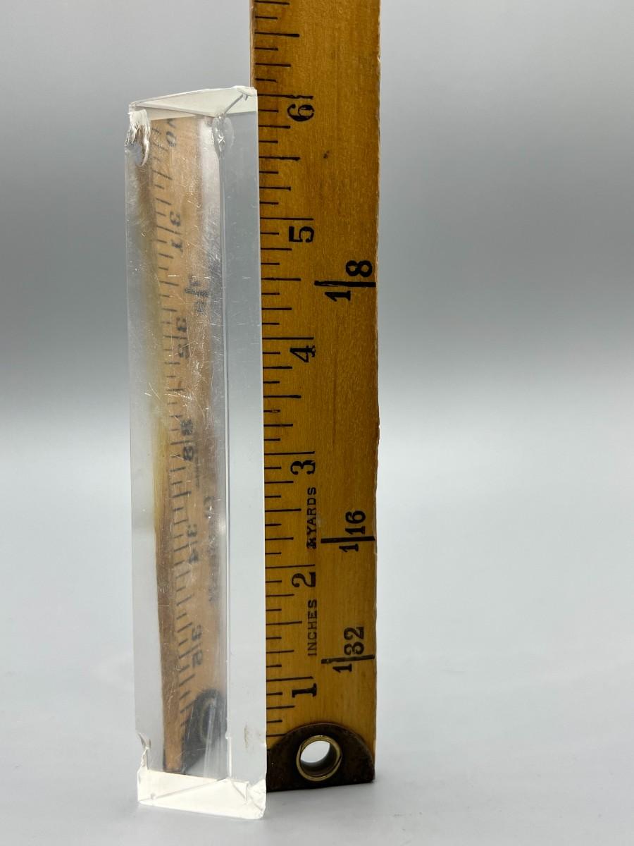 Triangle shaped magnifier block. Has some small chips near the end. About 6" length.