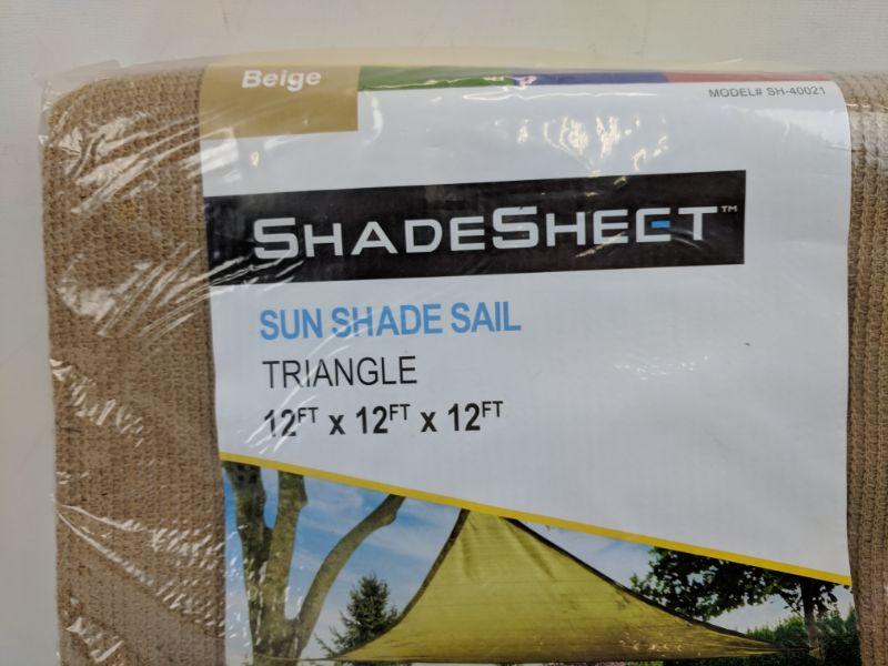 Triangle Sun Shade Sail, 12ft x 12ft x 12ft, Beige - New
