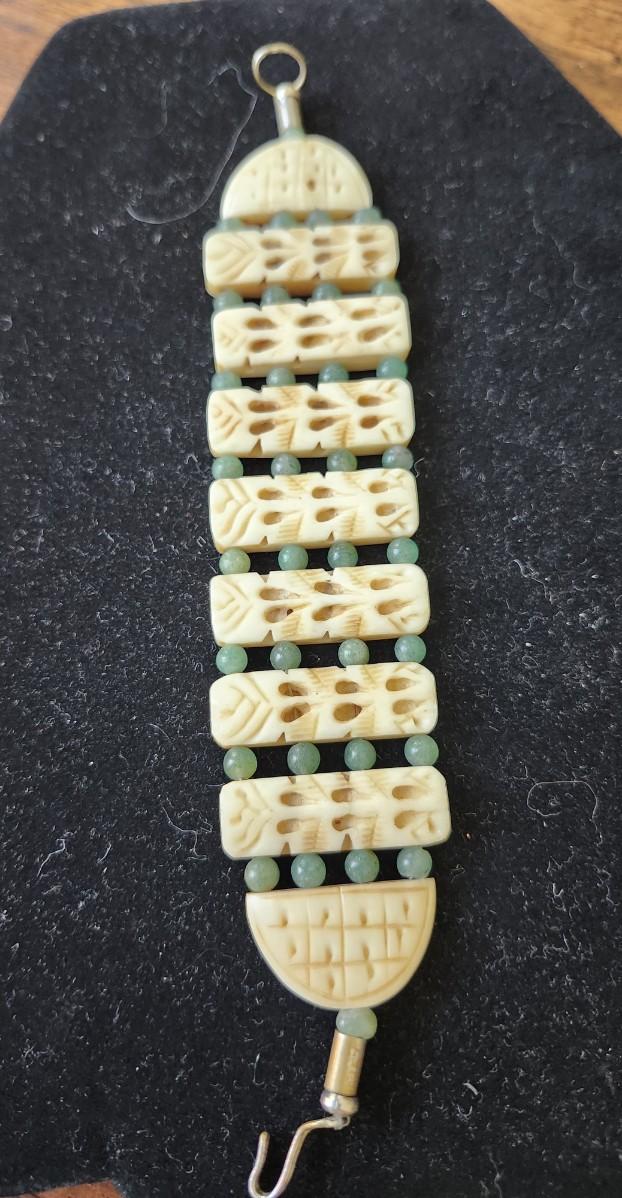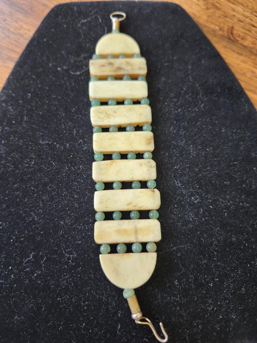Cowbone and jadeite beads