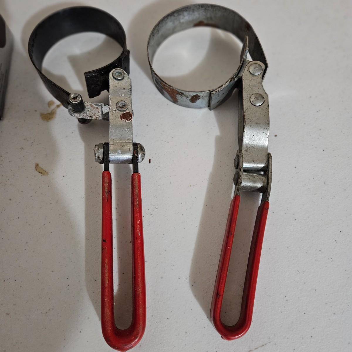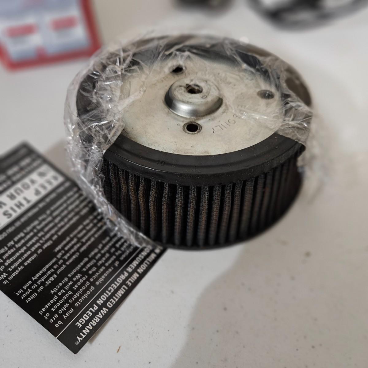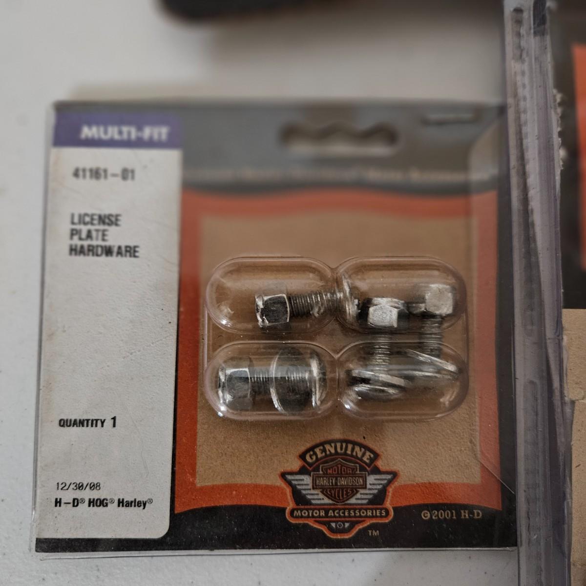 An assortment of Harley Davidson parts and accessories that includes two trickle chargers that both powered on when plugged in. Also included is various parts that likely fit an 2001 Dyna, oil filters, oil filter wrenches, and more. Shipping available