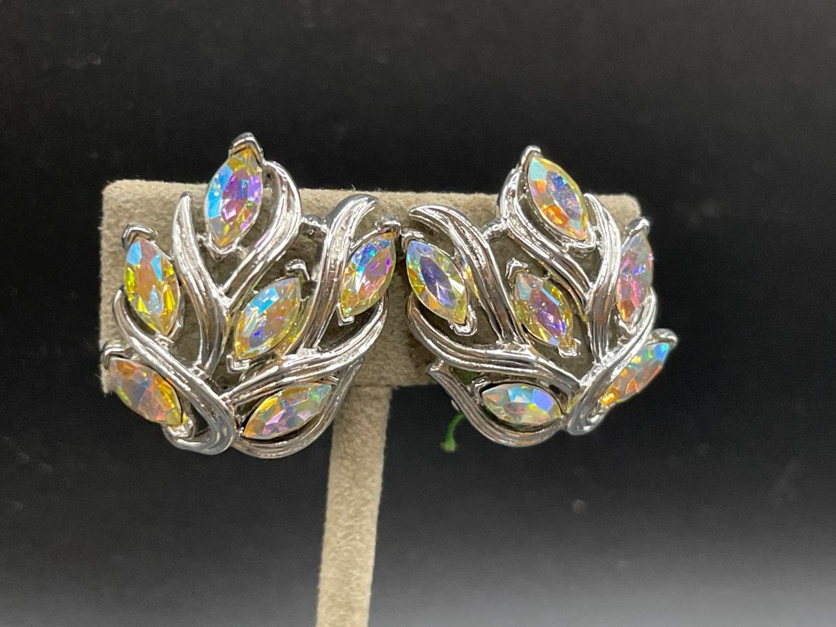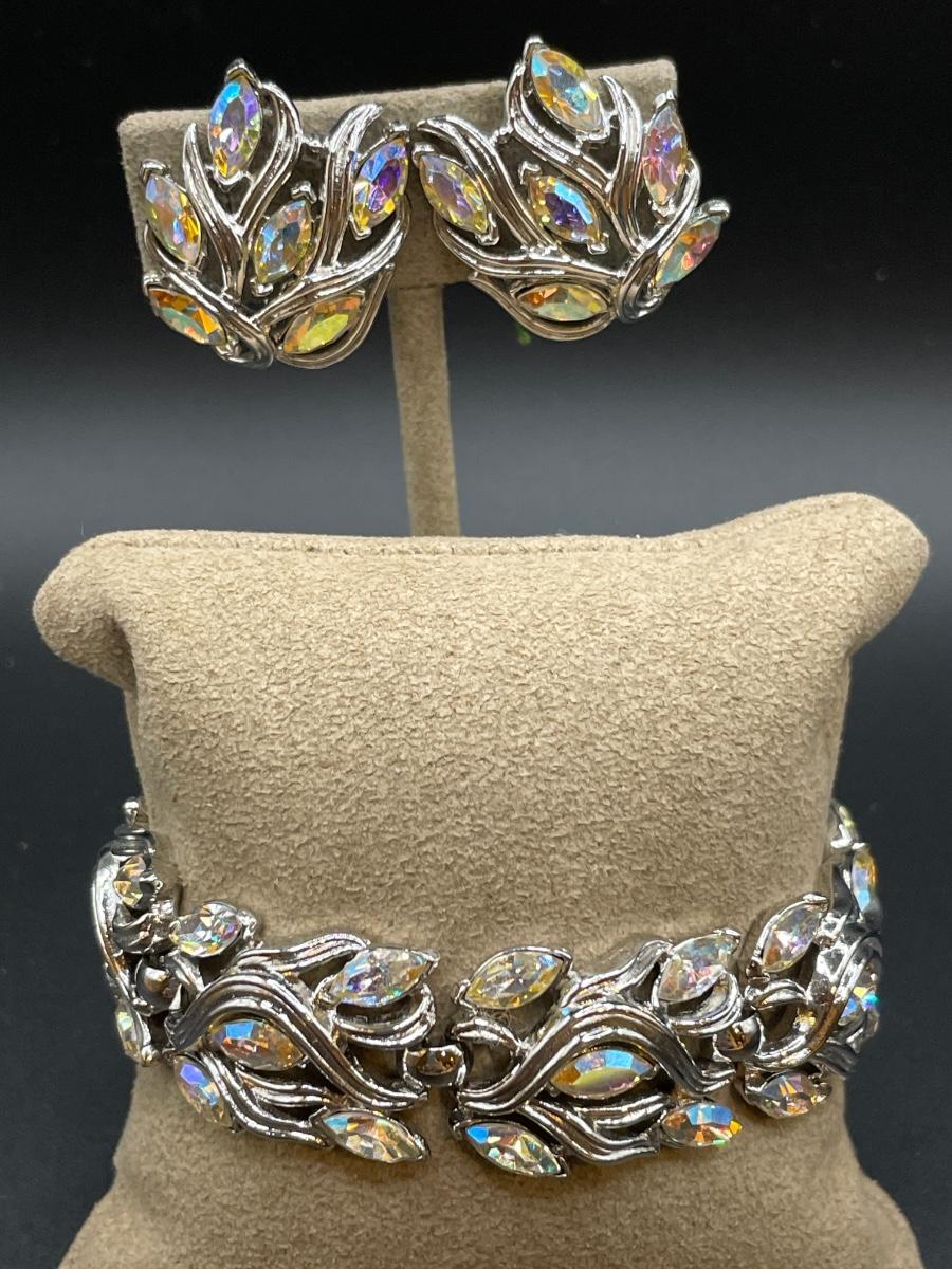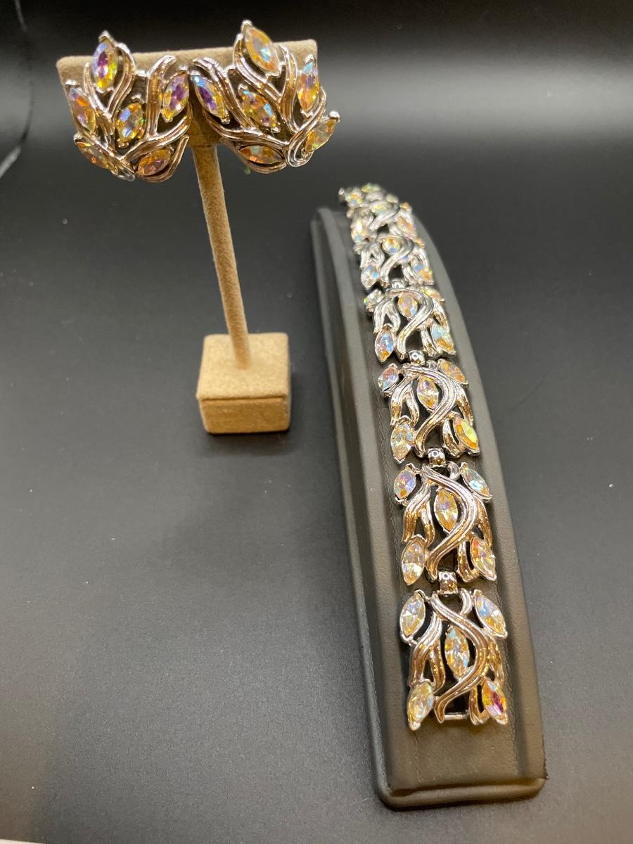 Vintage Trifari Aurora borealis bracelet and clip ons