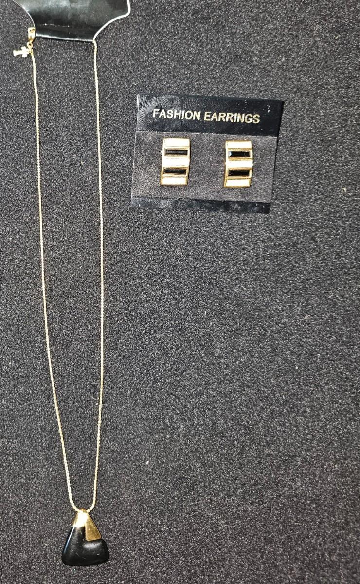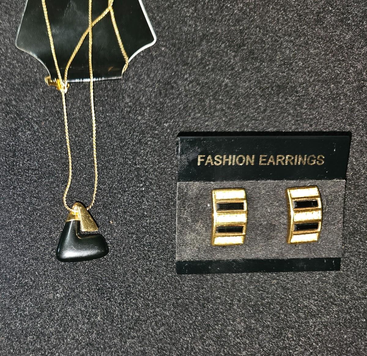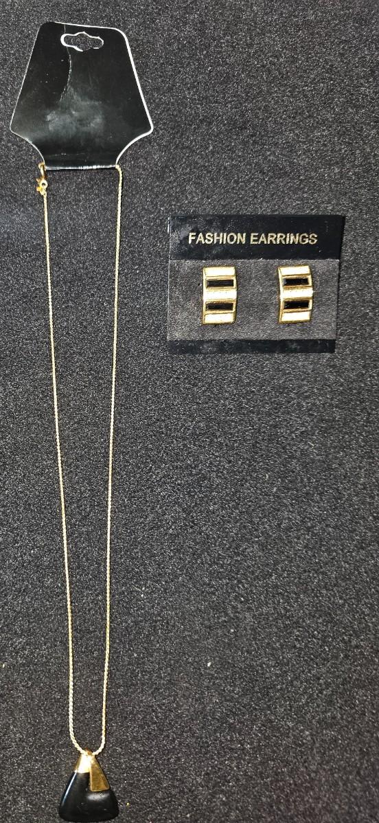 Trifari Black Lucite Necklace and Swarovski SAL Gold and Diamond Earrings