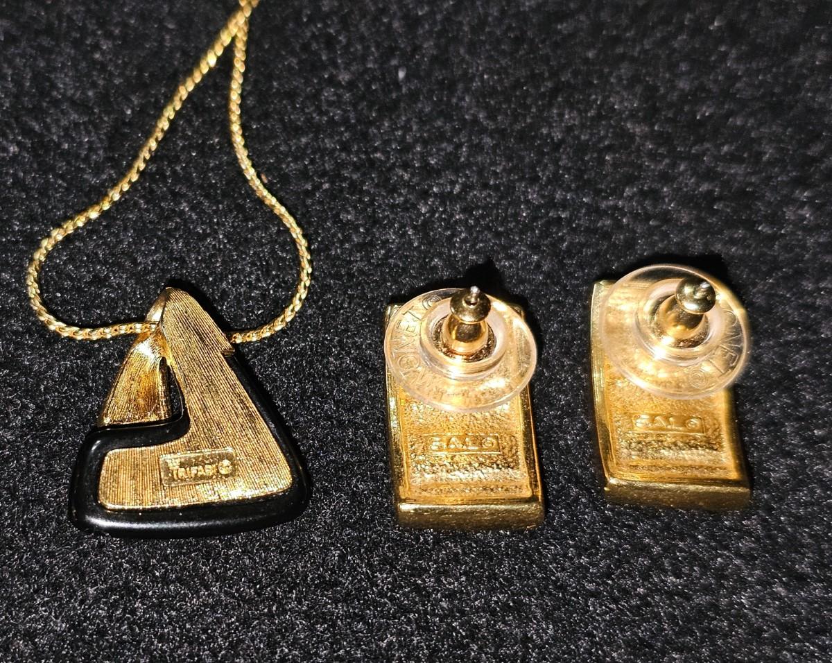 Trifari Black Lucite Necklace and Swarovski SAL Gold and Diamond Earrings | Both Marked and Signed