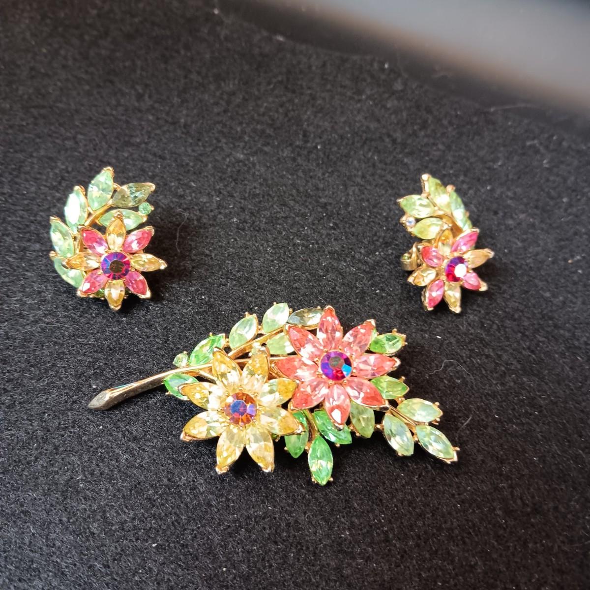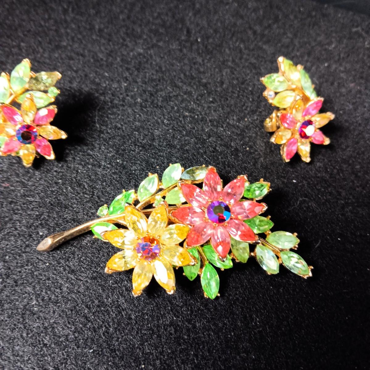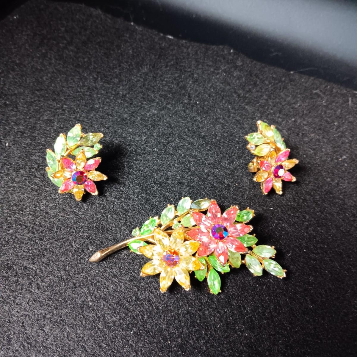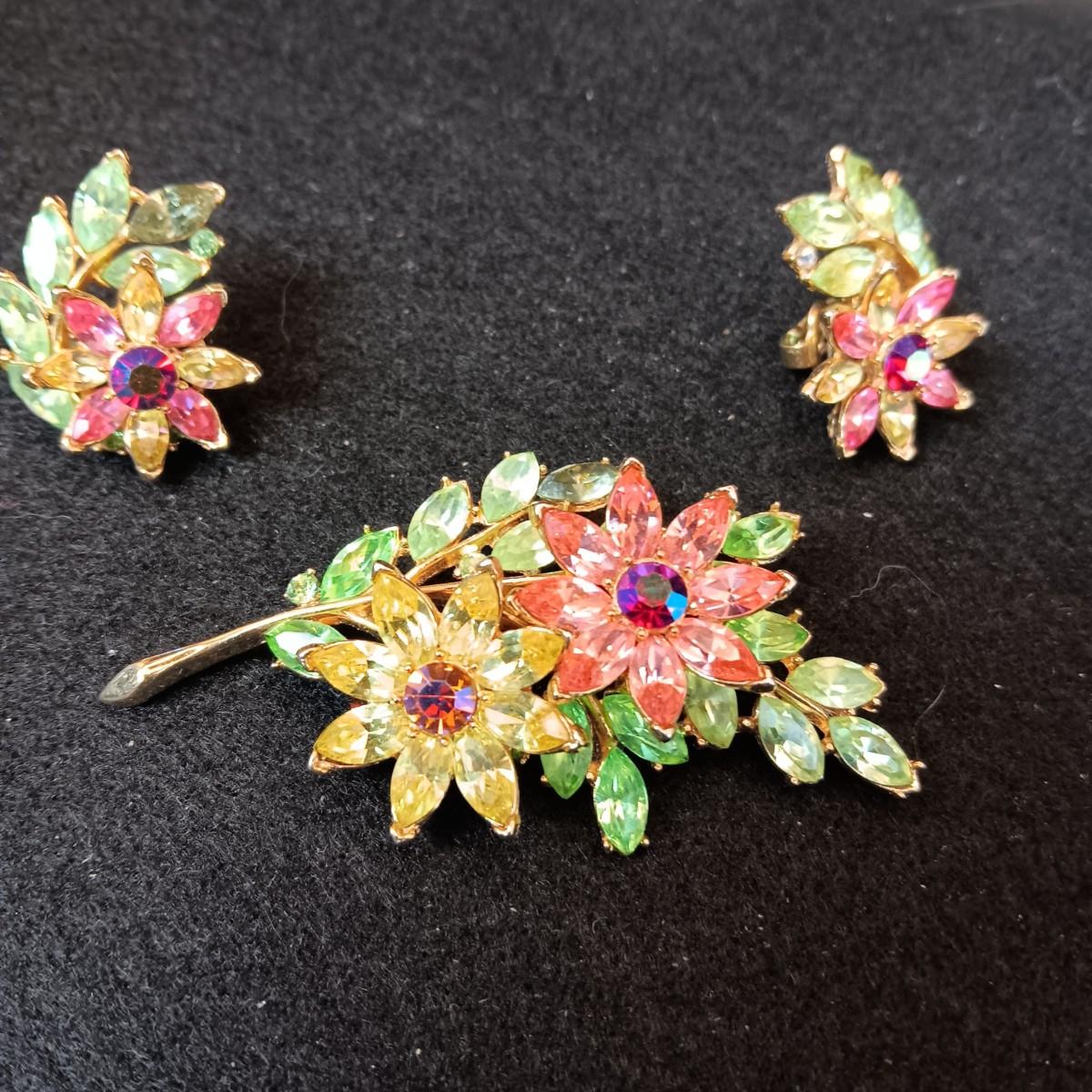 TRIFARI BROOCH AND CLIP ON EARRINGS