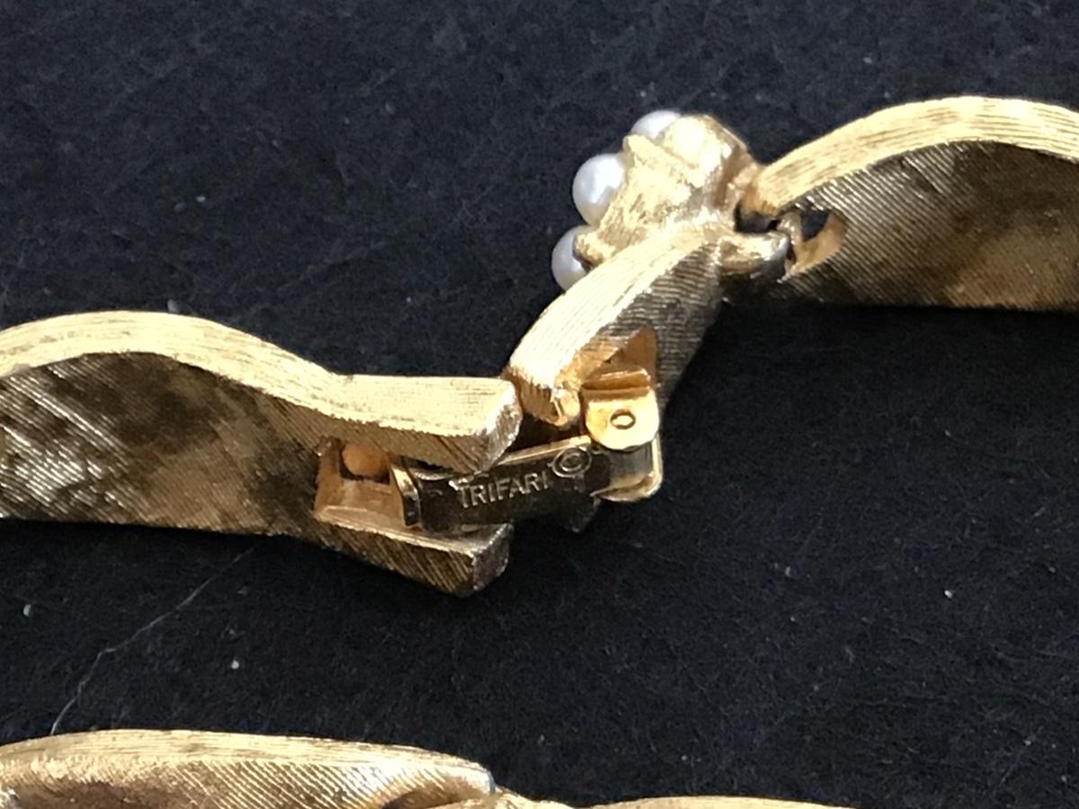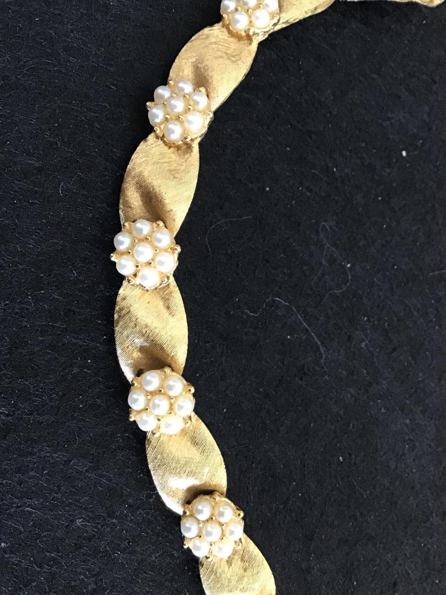 Trifari Brushed Gold Tiny Faux Pearl Bracelet. vintage