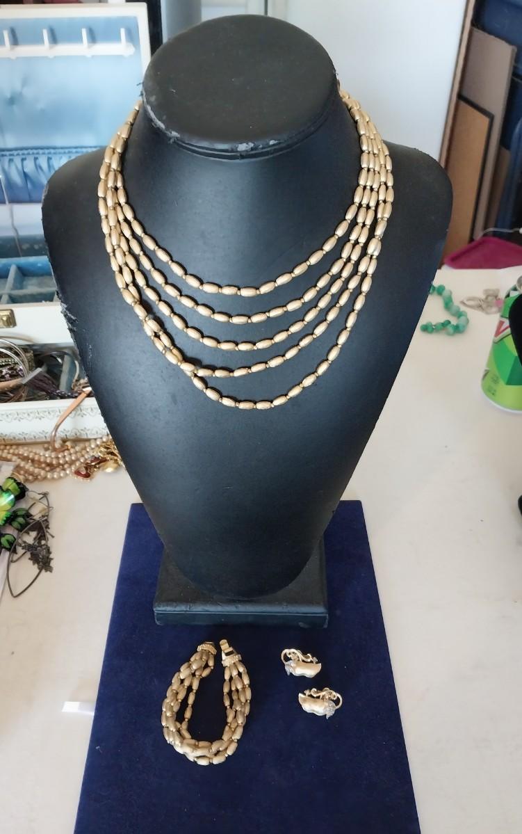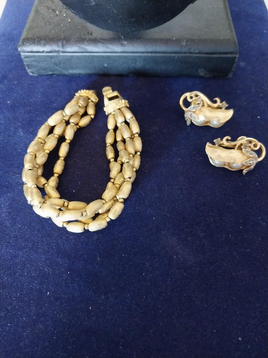 TRIFARI MATCHING NECKLACE AND BRACELET AND CLIP EARRINGS