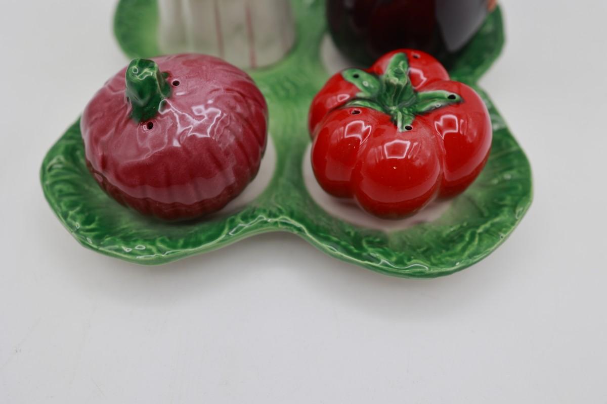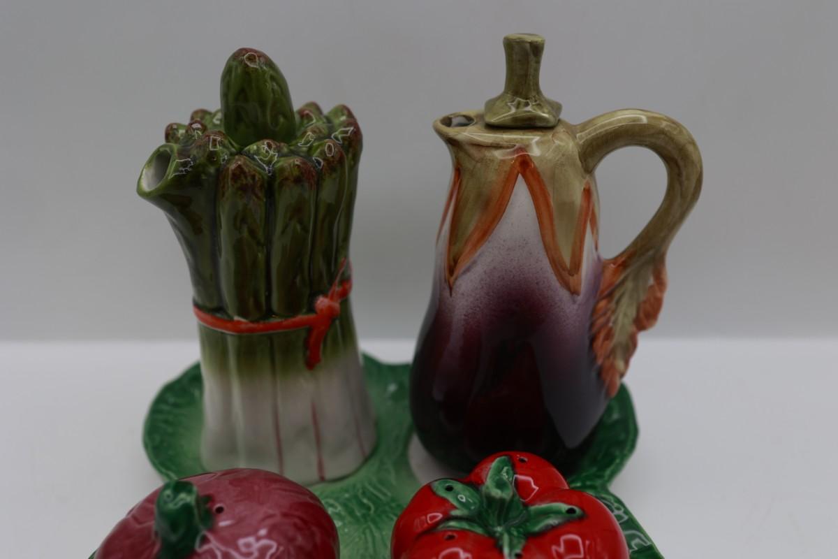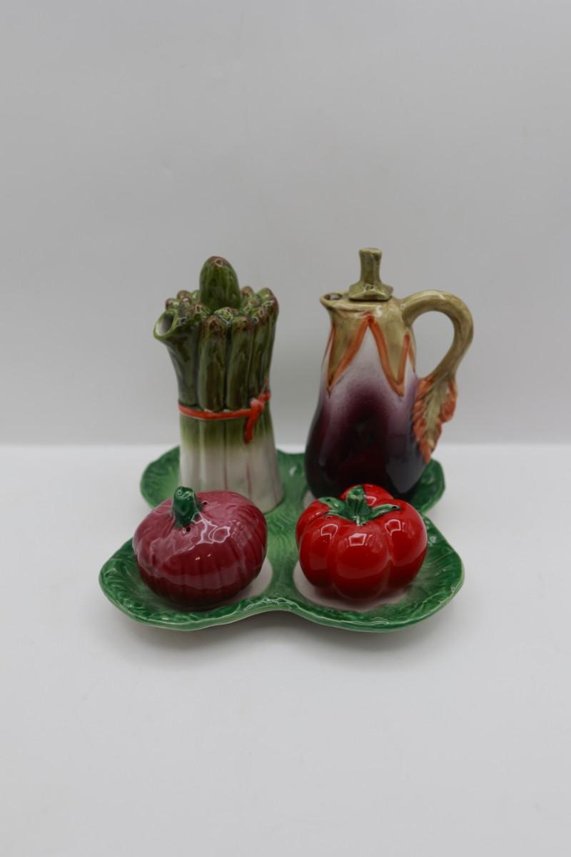 Trifles Made in Italy Vegetable Cruet Set - Oil, Vinegar,‎ Salt and Pepper Tray