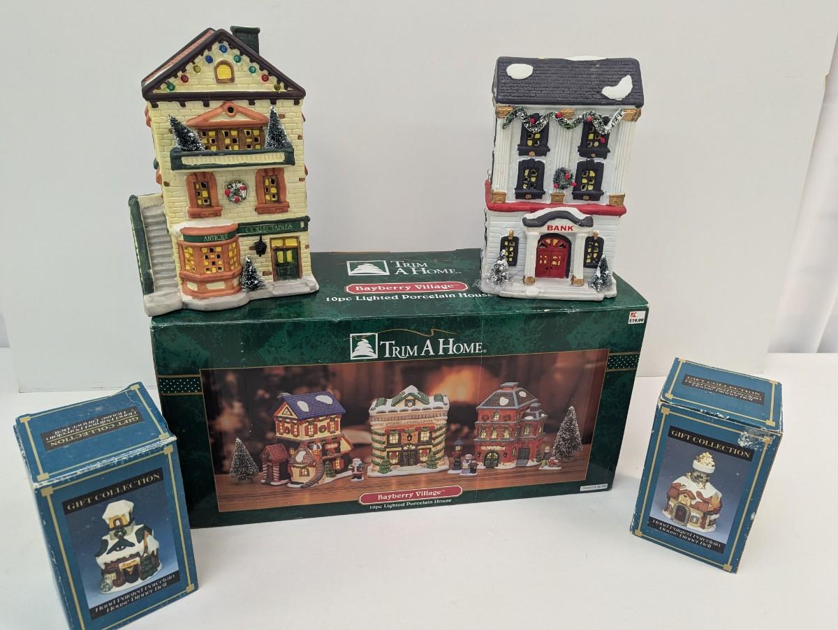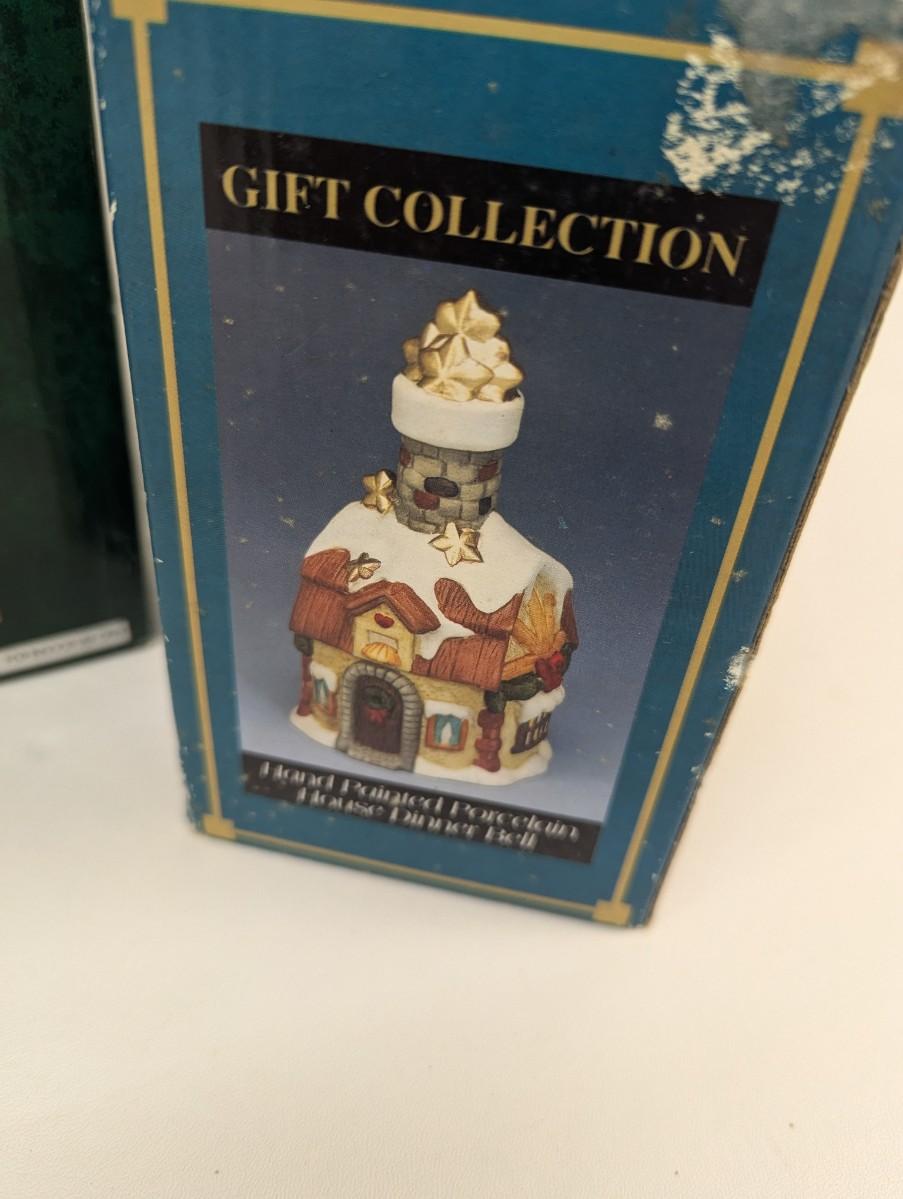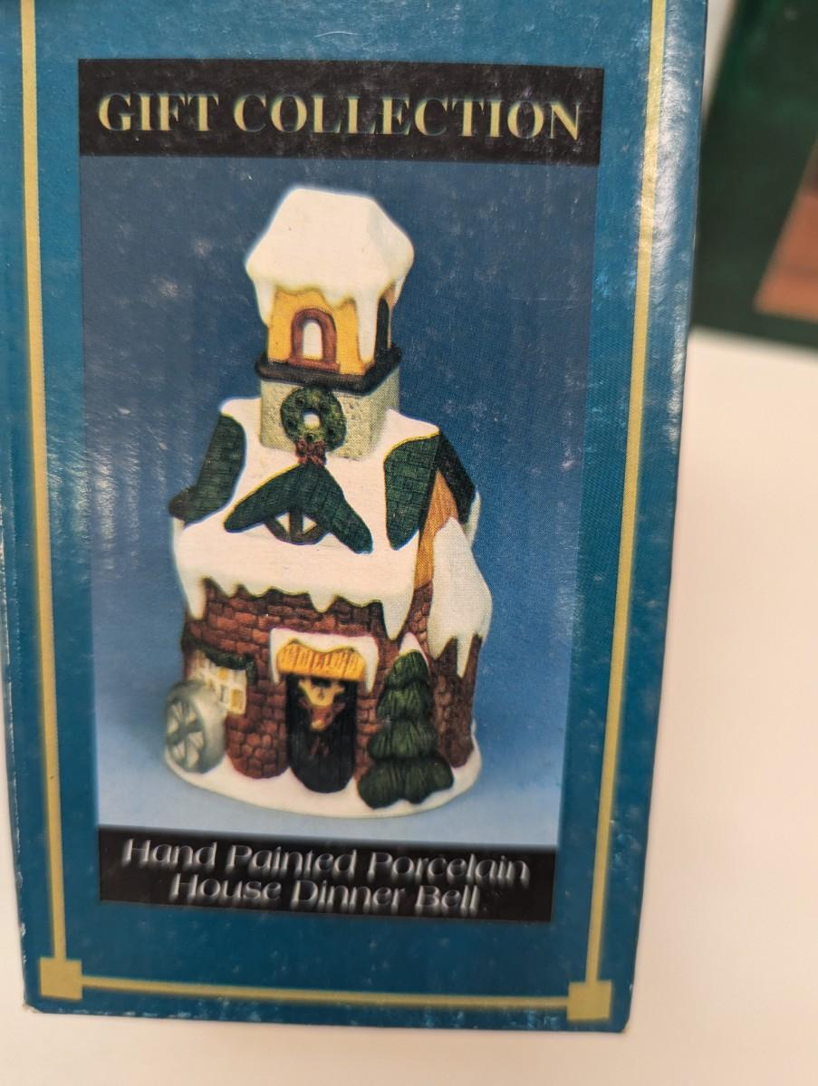 Trim A Tree Bayberry Village Hand Painted Porcelain House Dinner Bells 1995 NOMA Homes