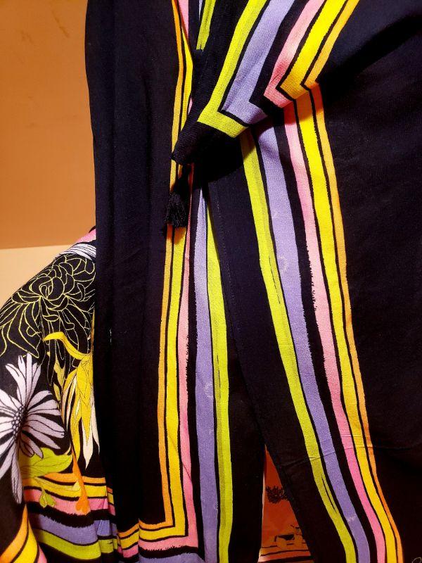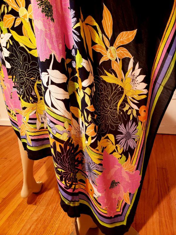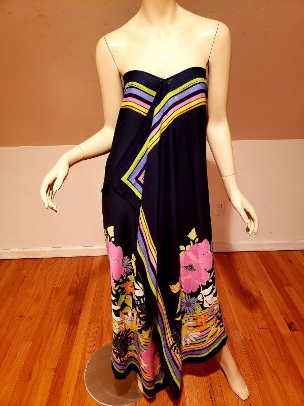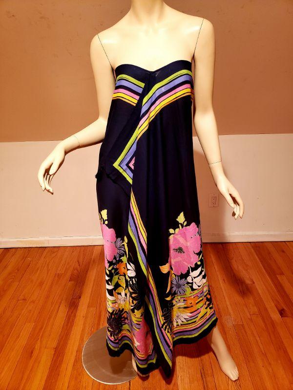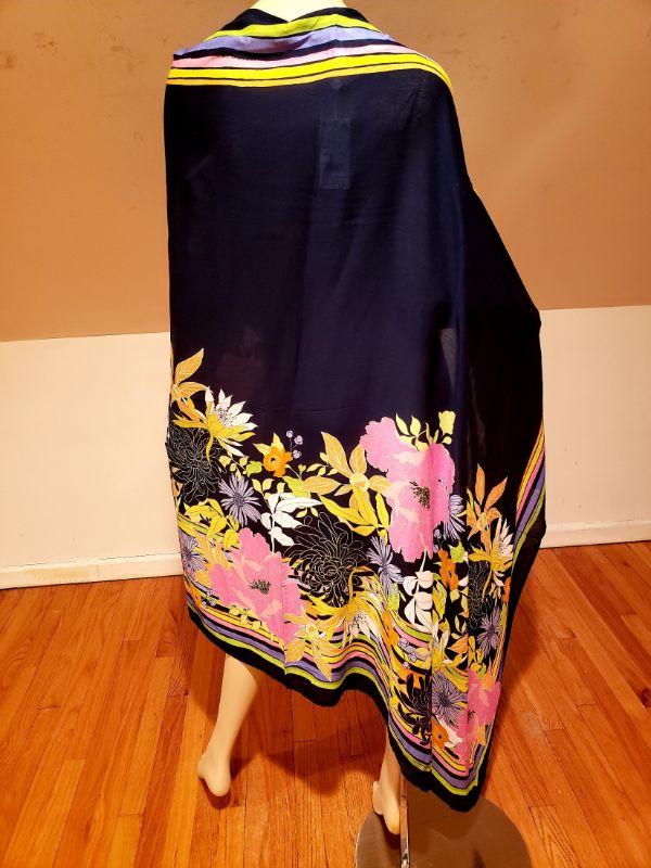 NWT Old stock in a soft crepe fabric floral Stone painteddesign multi colored on blue background