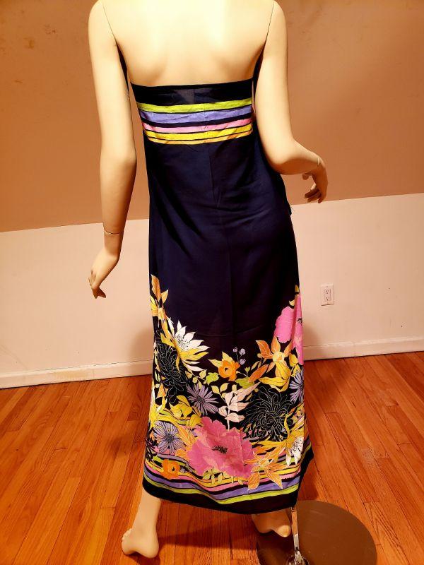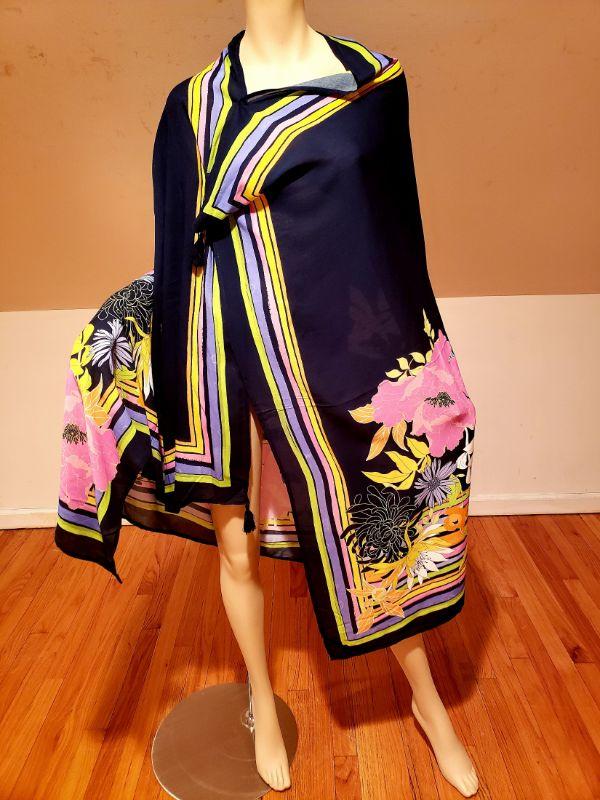 NWT Old stock in a soft crepe fabric floral Stone painteddesign multi colored on blue background