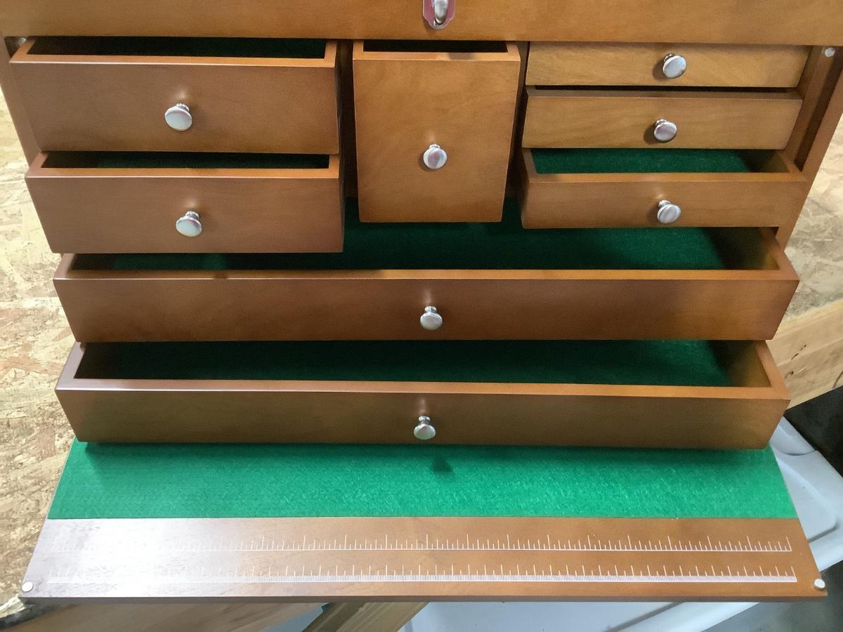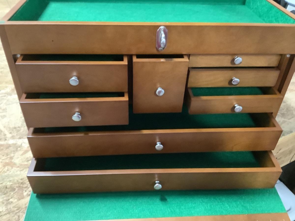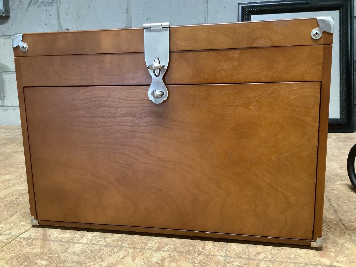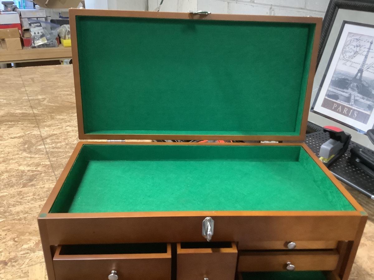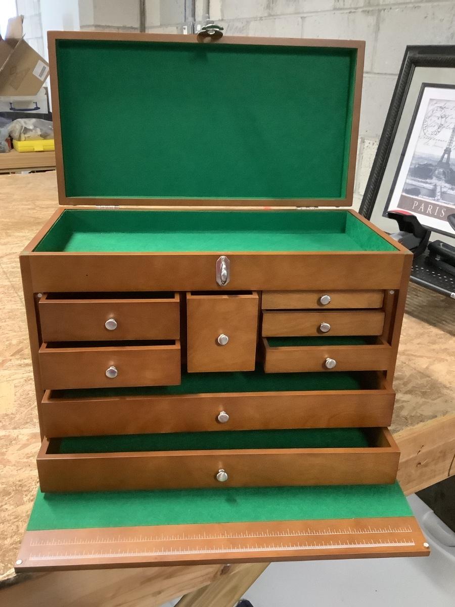 Trinity wooden tool/HOBBY chest 14"H 20" x 11" 8 drawers, top opens with storage and bottom pulls out