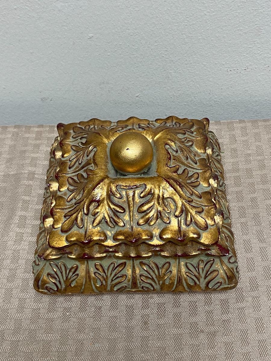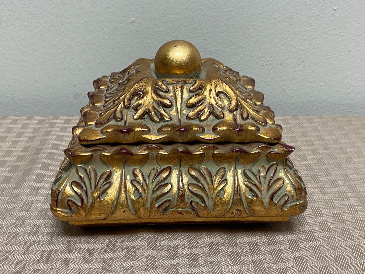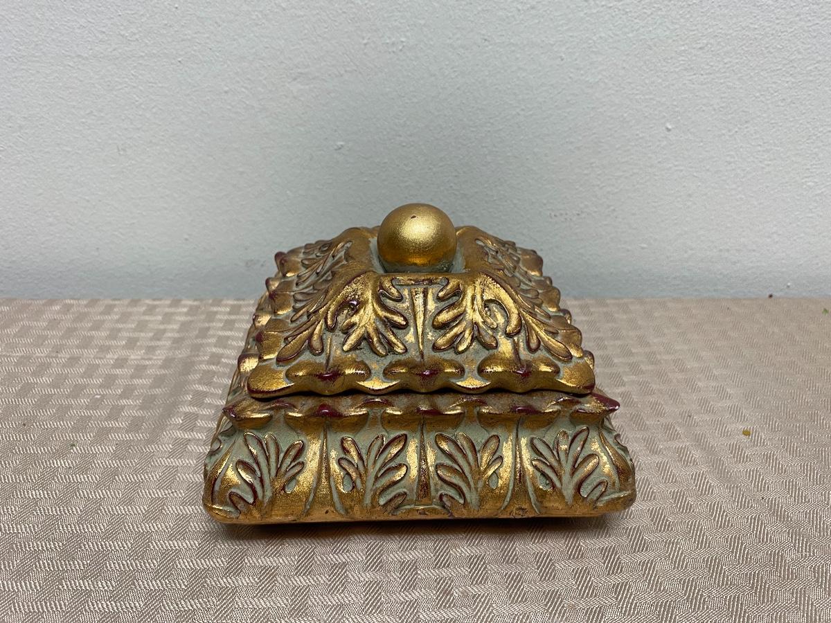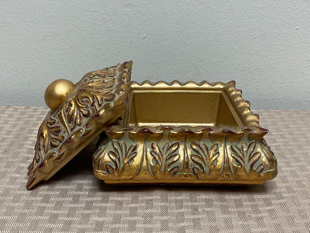 Heavy Gold Gilt Lidded Trinket Jewelry Box