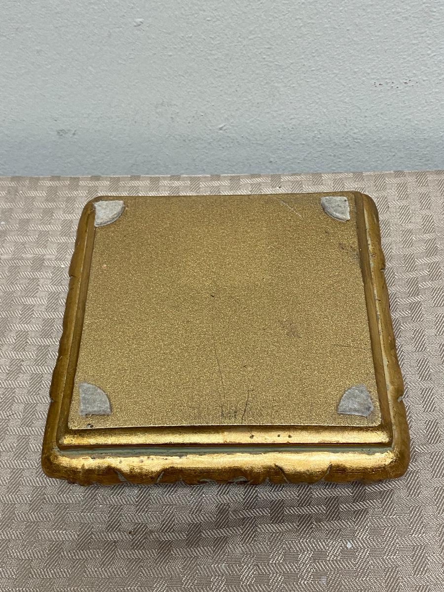 Heavy Gold Gilt Lidded Trinket Jewelry Box. In good condition, About 6" square.