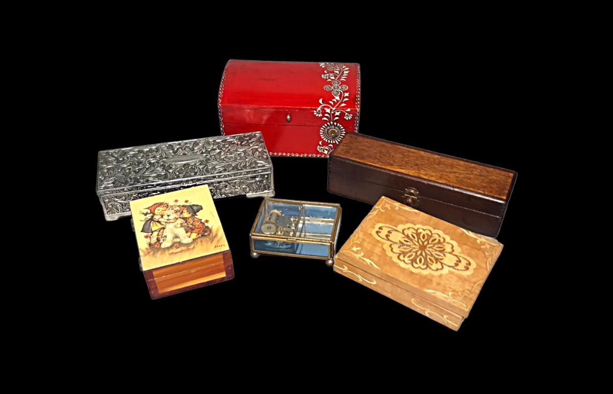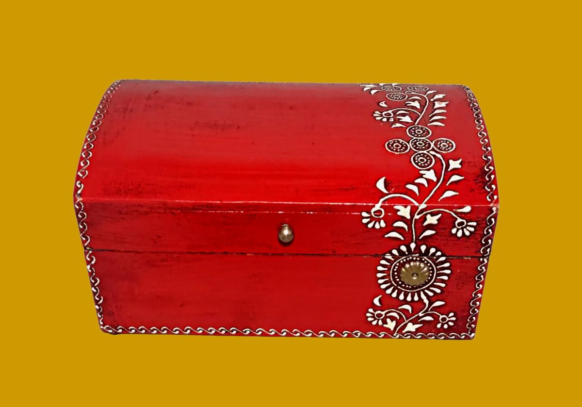 1. Red Wooden Trinket Box - No Markings (8"L x 3.5"H x 5"W)