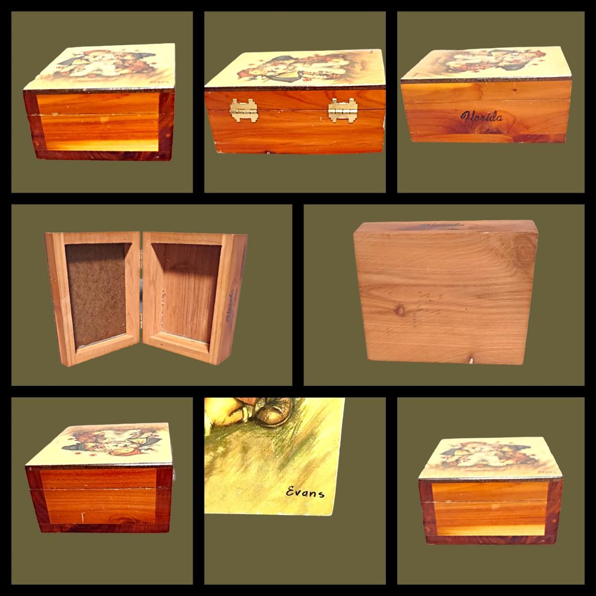 4. Florida Wooden Souvenir Box - Signed Evans (4"L x 5"H x 2"W)