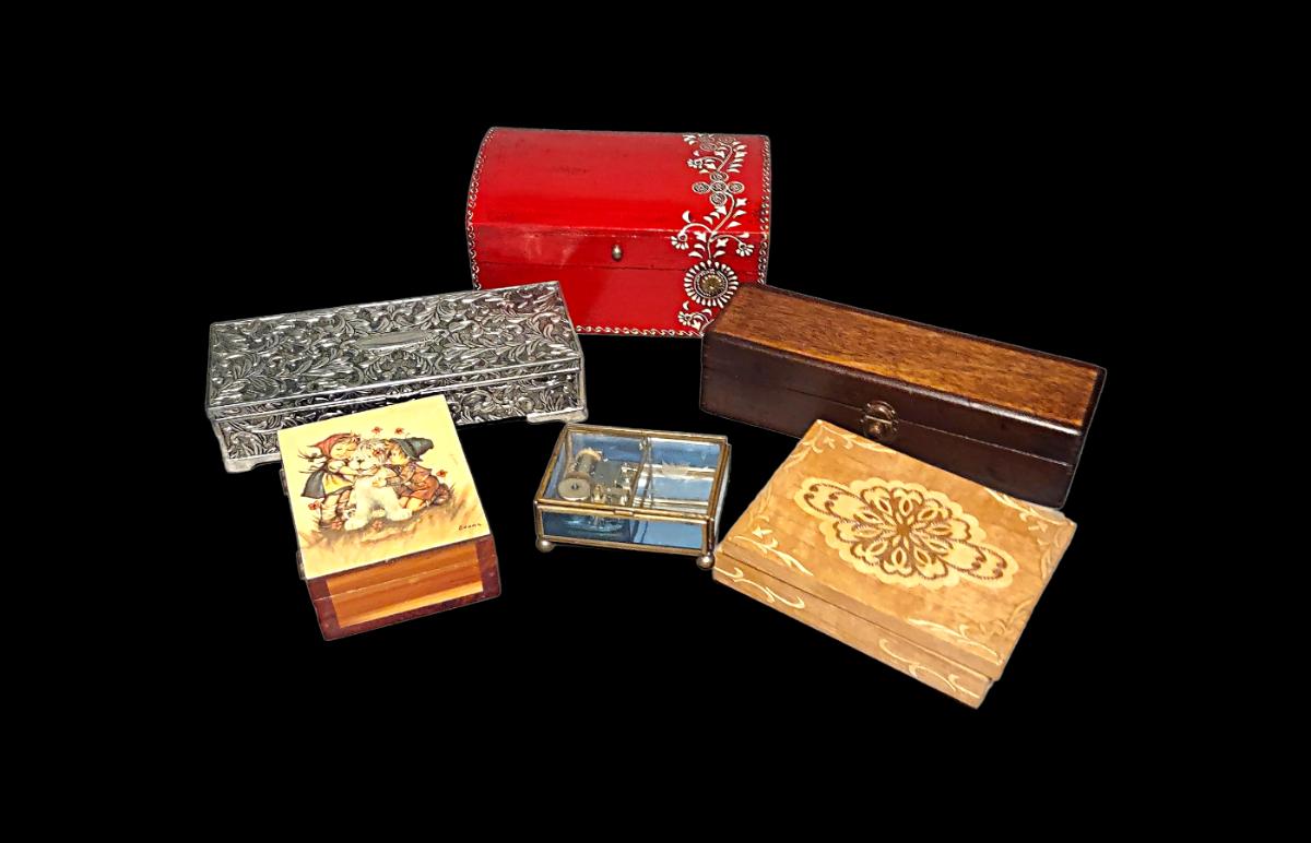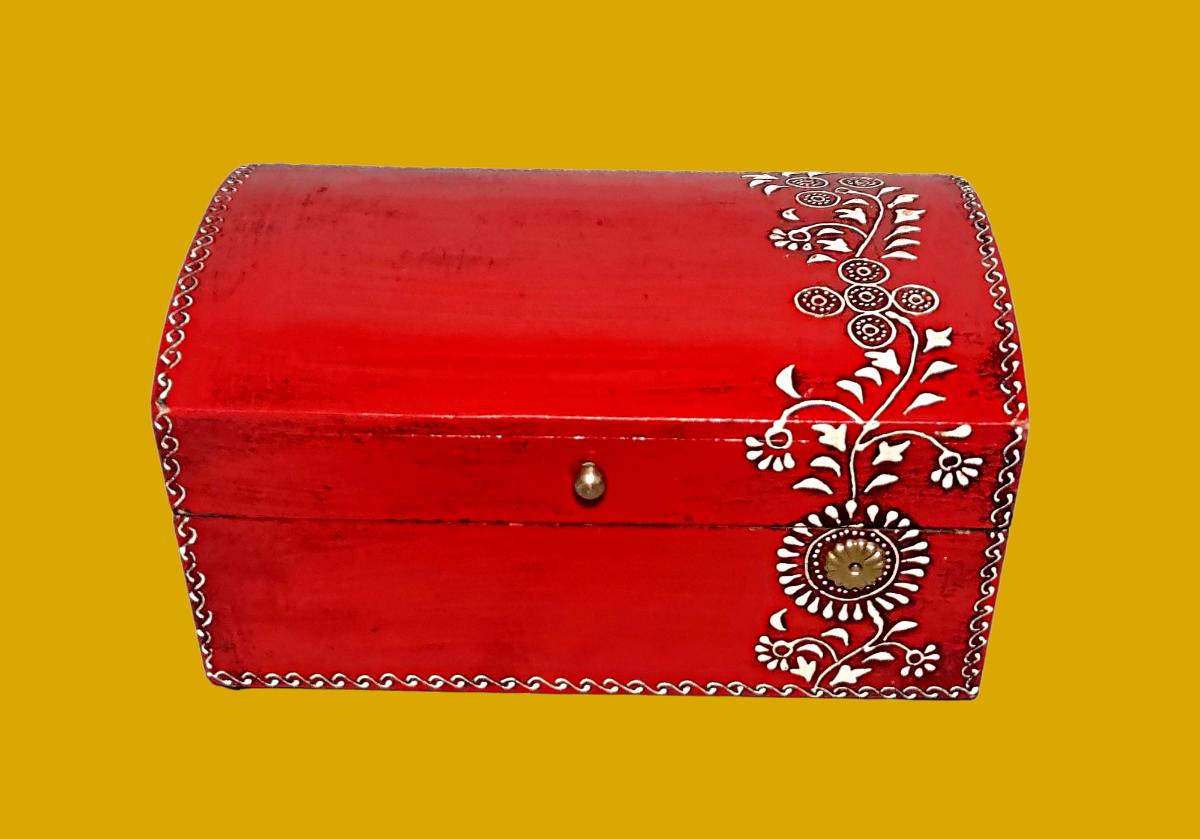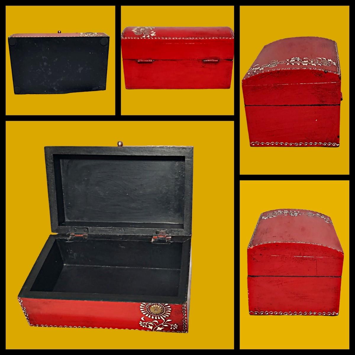 1. Red Wooden Trinket Box - No Markings (8"L x 3.5"H x 5"W)