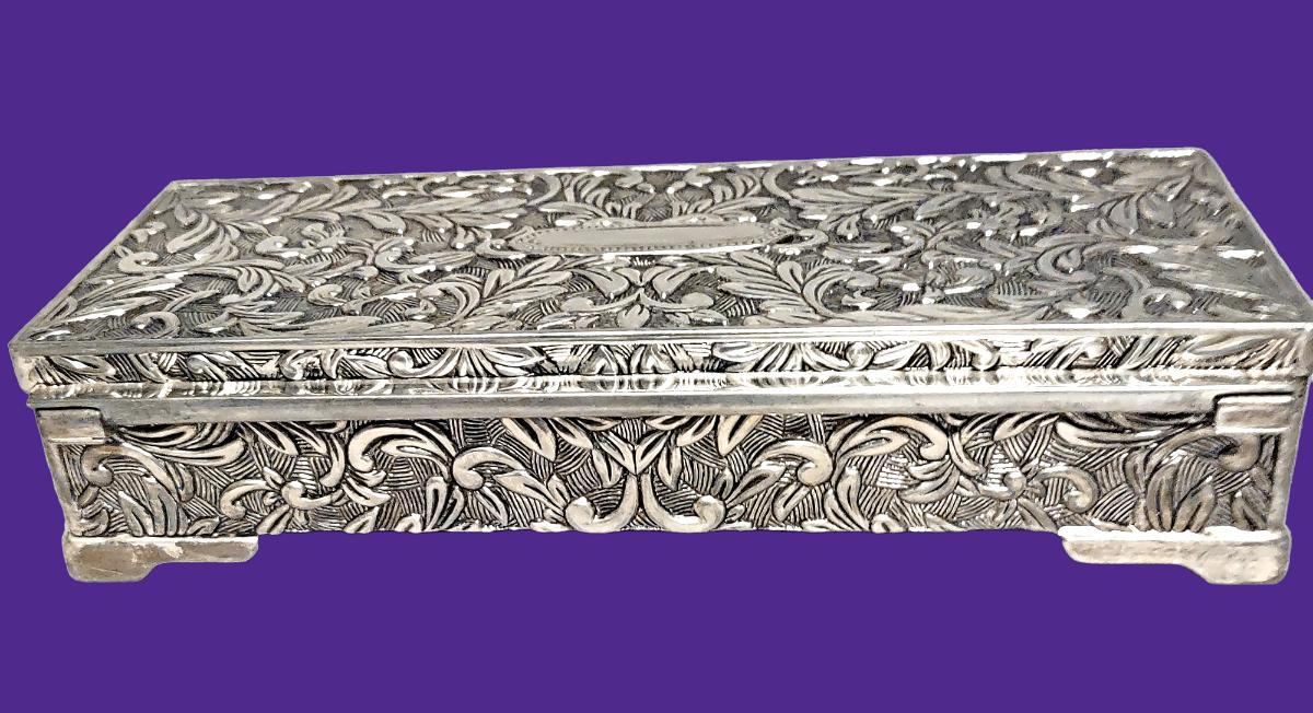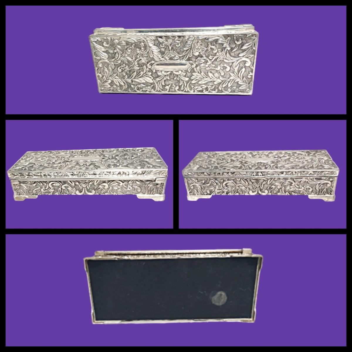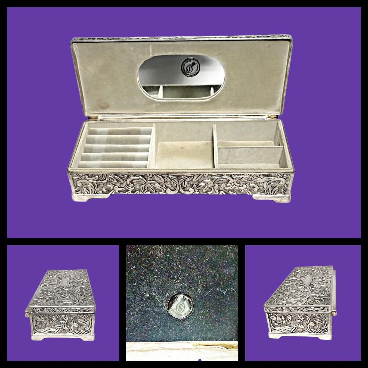 5. Vintage Godinger Silver Art Co Ltd - Cast Metal Ornate Motif Jewelry Box w/ Mirror (9"L x 1.75"H x 3.5"W)