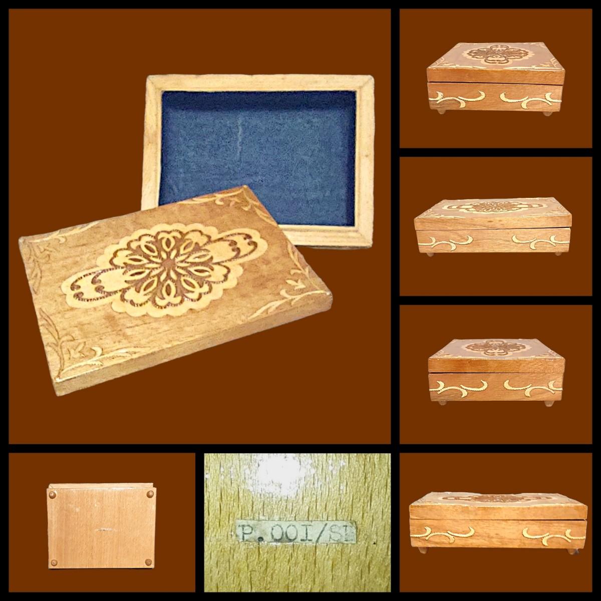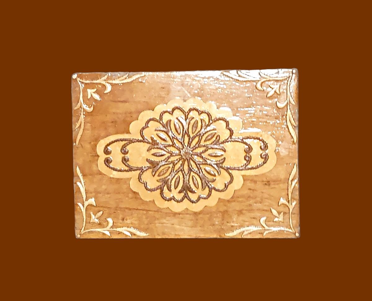 3. Wooden Box w/ Design - Marked P00I.SL on Bottom (6"L x 1.5"H x 5"W)