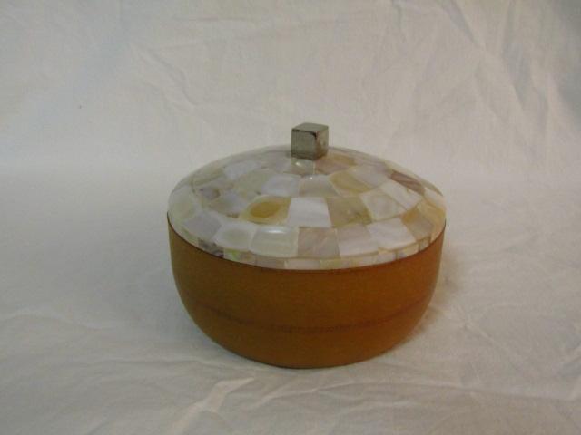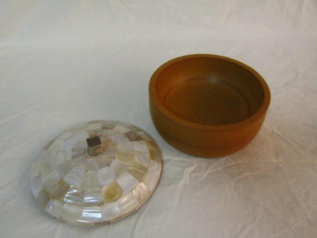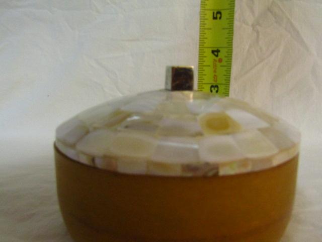 Trinket Box- Wood with Mother of Pearl Lid- 5 Inches in Diameter
