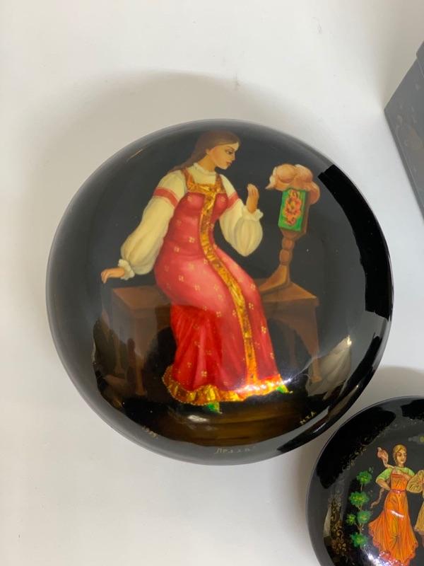 (3) Beautiful Russian Lacquer boxes in excellent condition. Shipping available for extra cost.