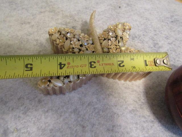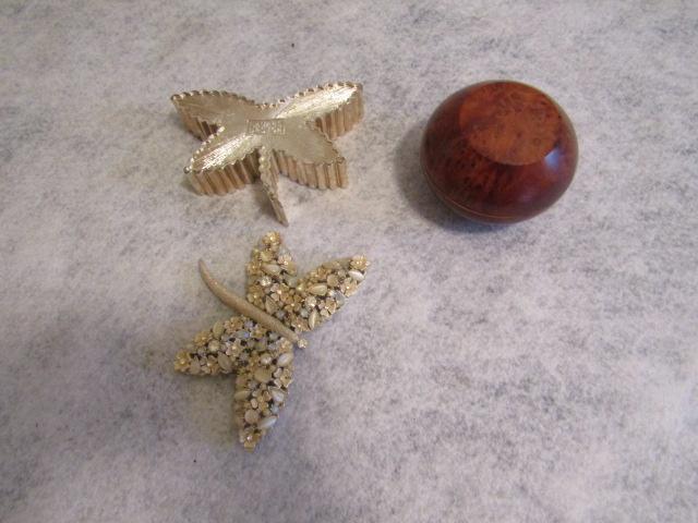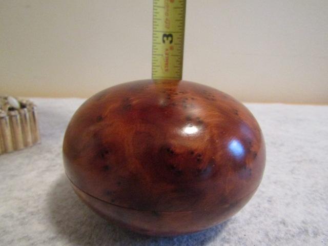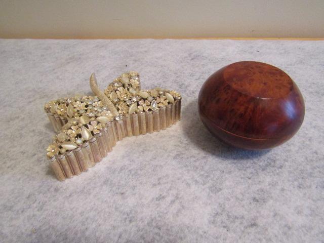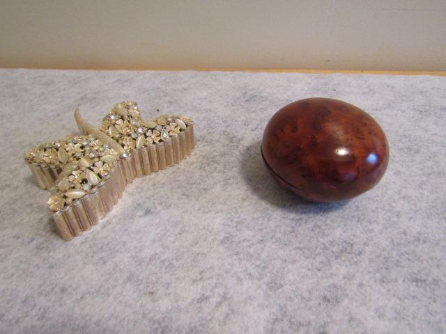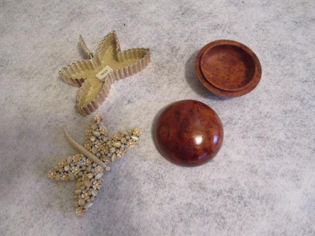 Trinket Boxes:  Butterfly- 4 1/2" x 3"  Polished Wood Round- 3" in Diameter x 2" High