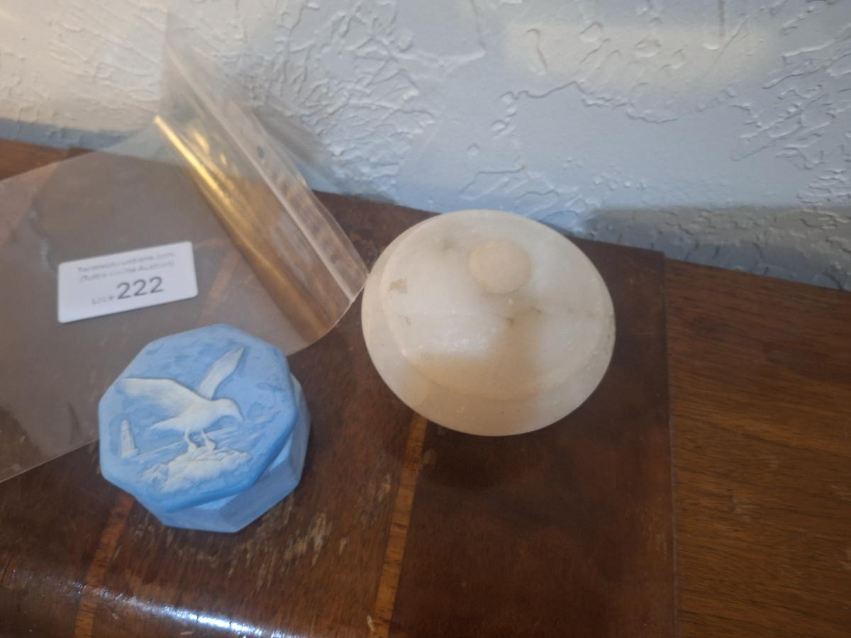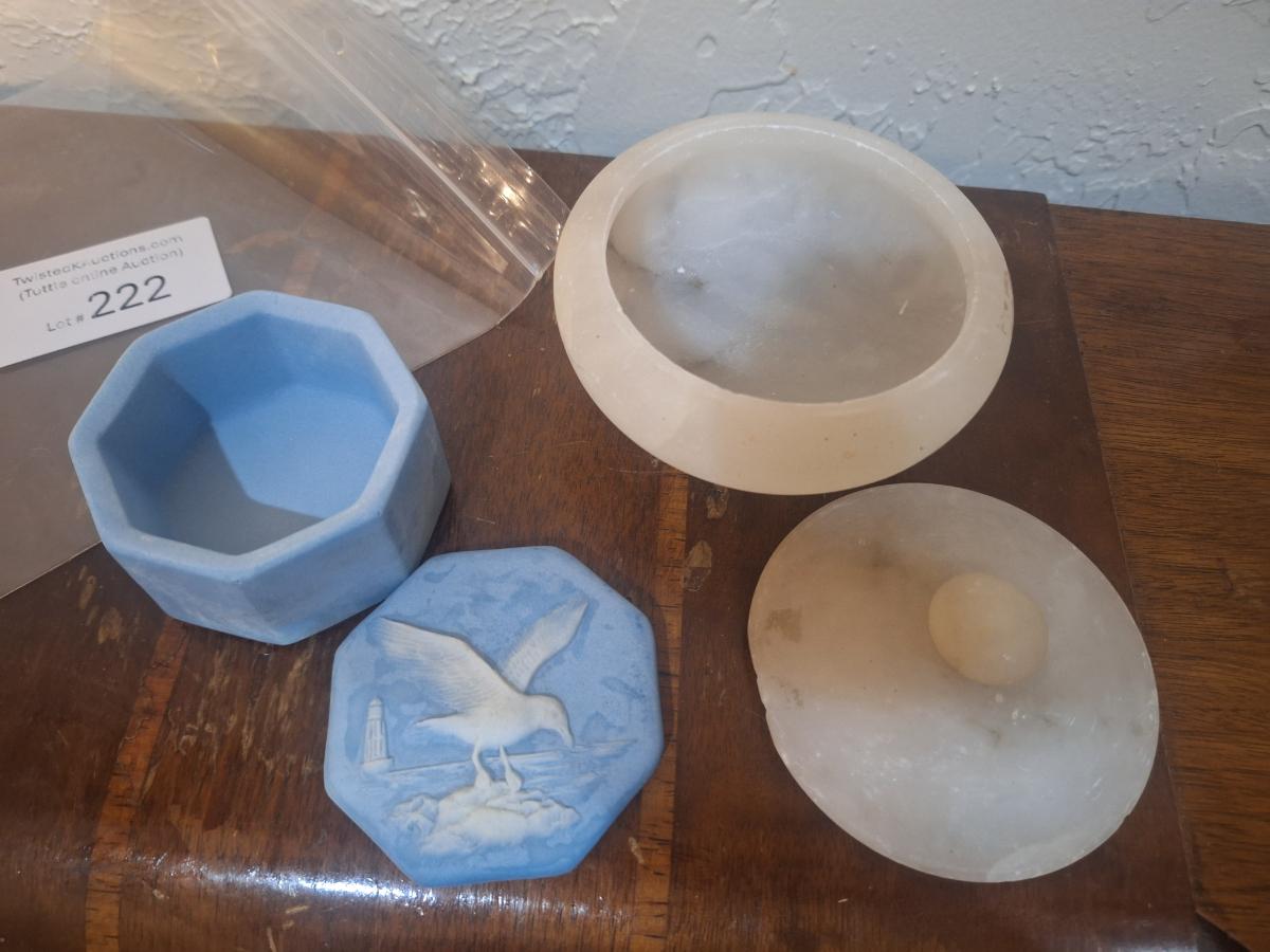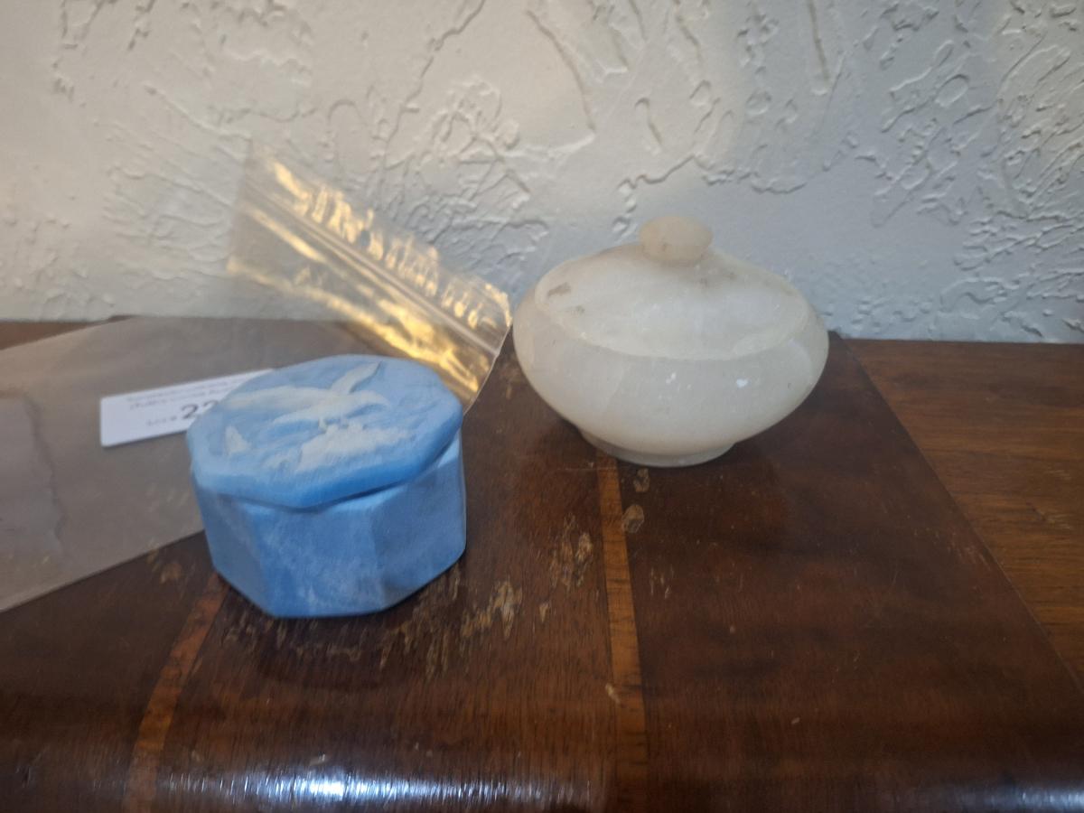trinket boxes, satin white and incolay stone trinket box