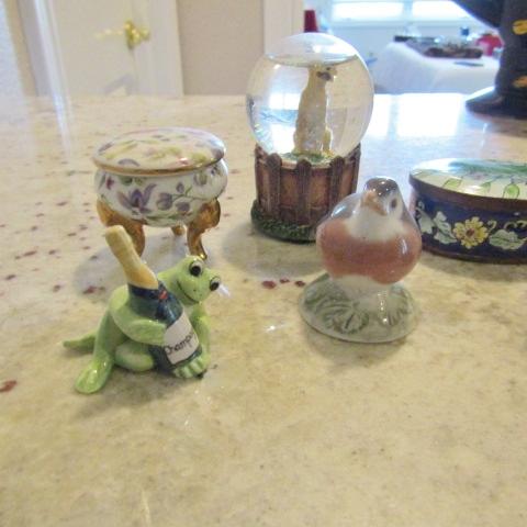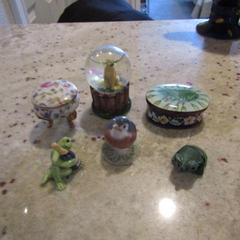LOT 122  TRINKET BOXES, SNOWGLOBE, FIGURINES
