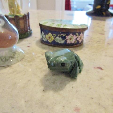 2 VERY SMALL CERAMIC FROGS AND A BIRD