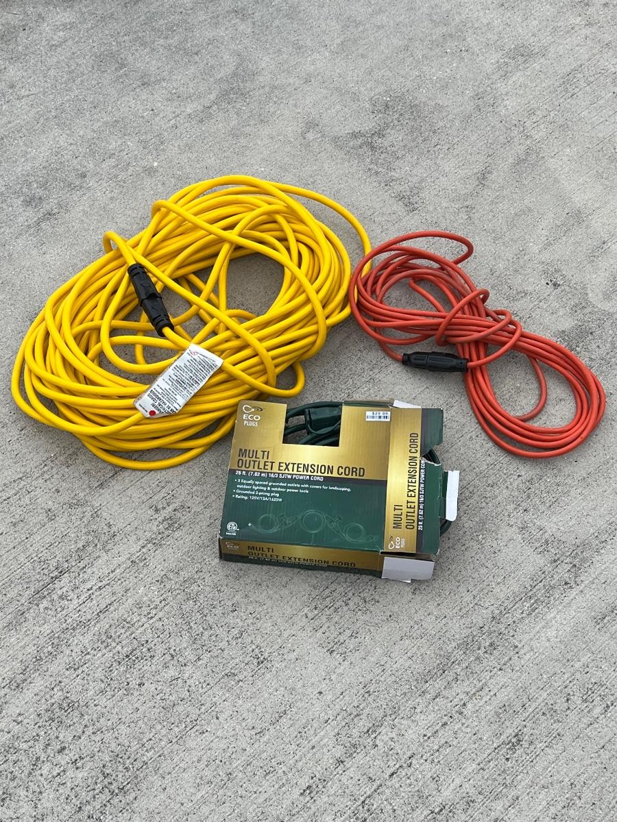 Green cord = 25ft ~ Orange = 25ft ~ Yellow = 100ft