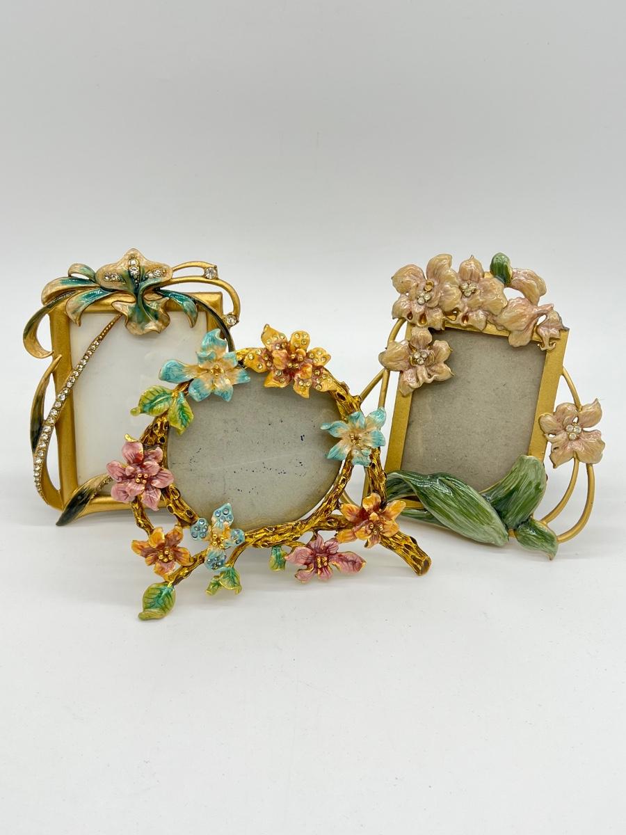 Trio (3) ~ Mini Enameled & Bejeweled Picture Frames