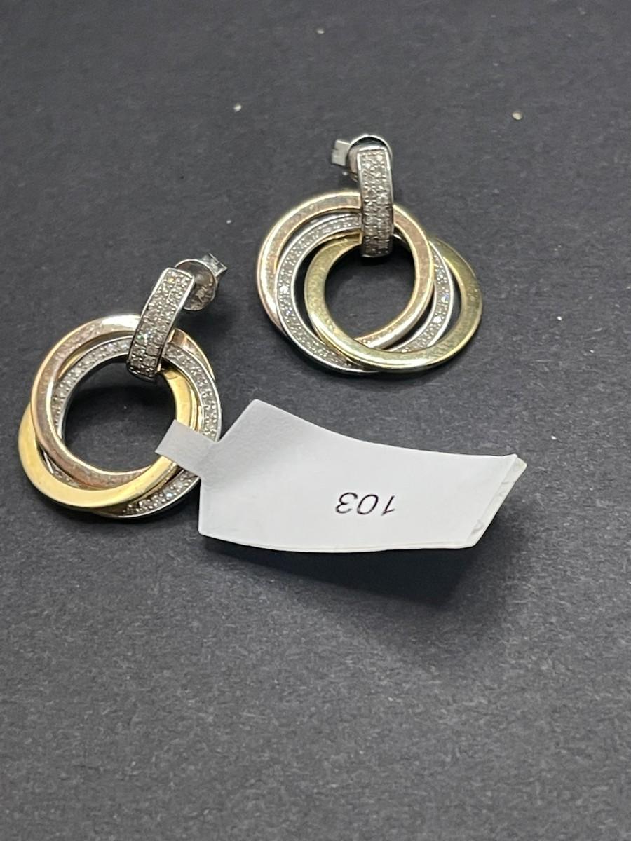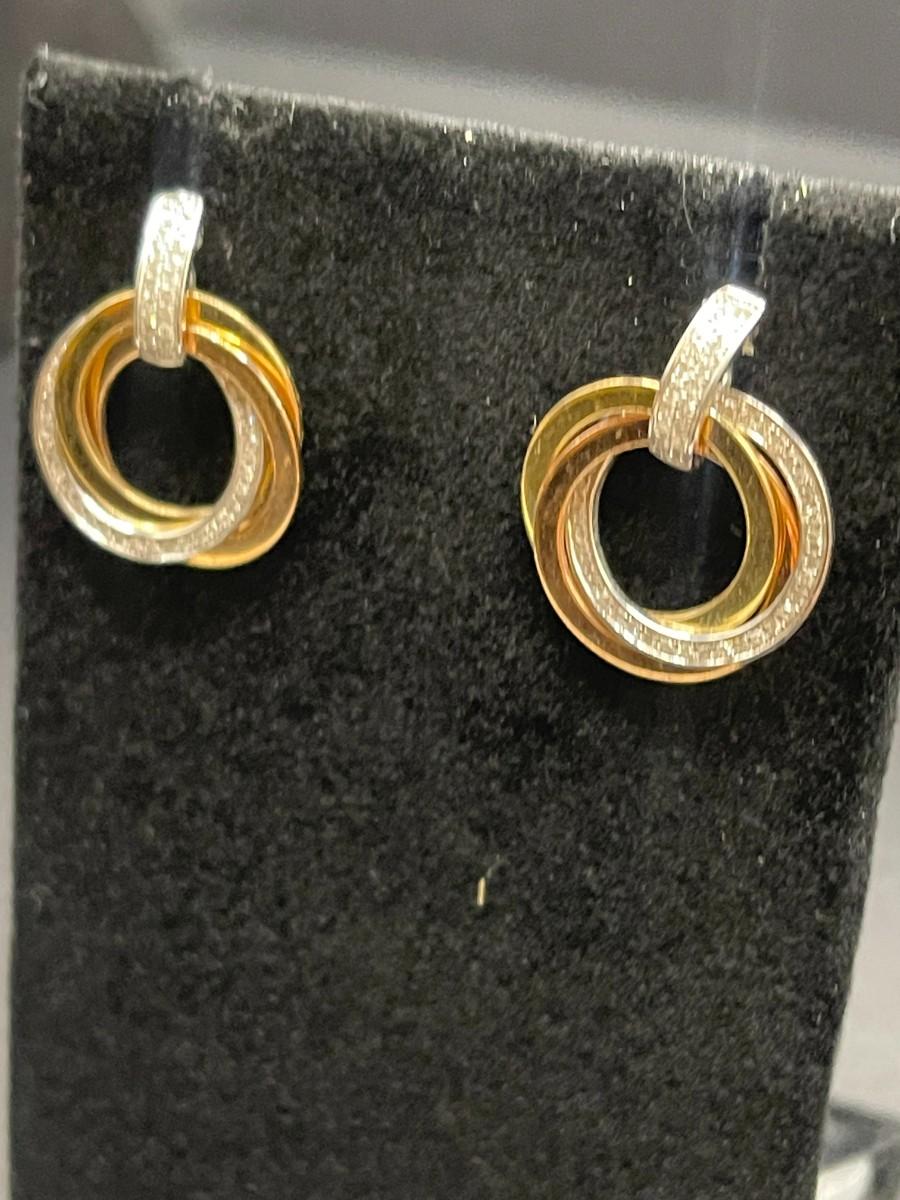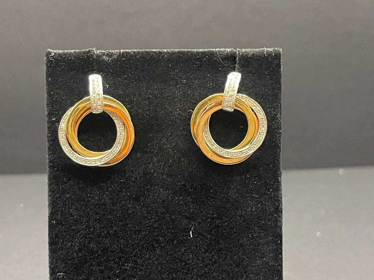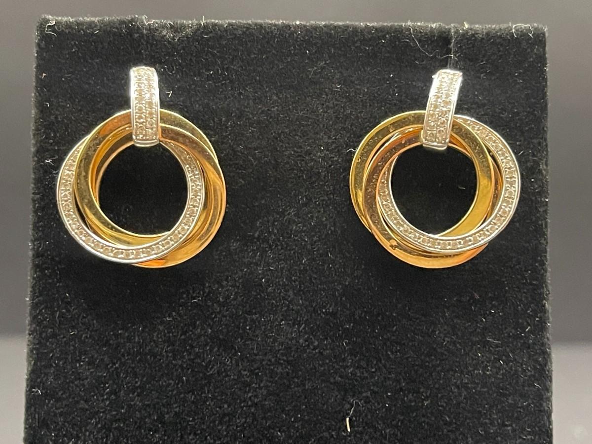 EFFY tri color gold circle earrings with diamonds. 5.58 grams. G SI2. Good condition.