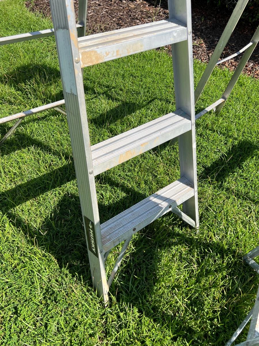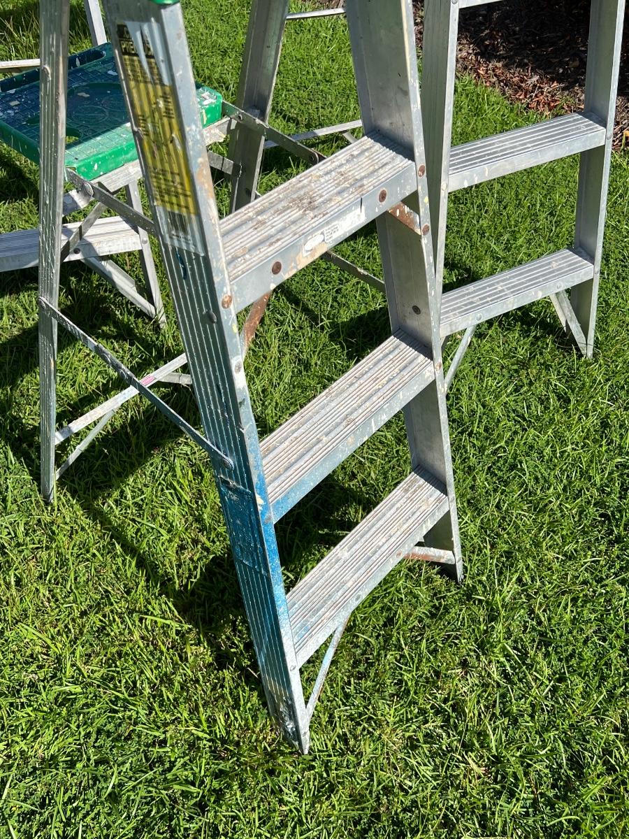 Includes: (2) 6ft ladders & (1) 4ft ladder ~ 4 ft ladder has minor damage on tray, does not interfere with the ladder itself, see photos
