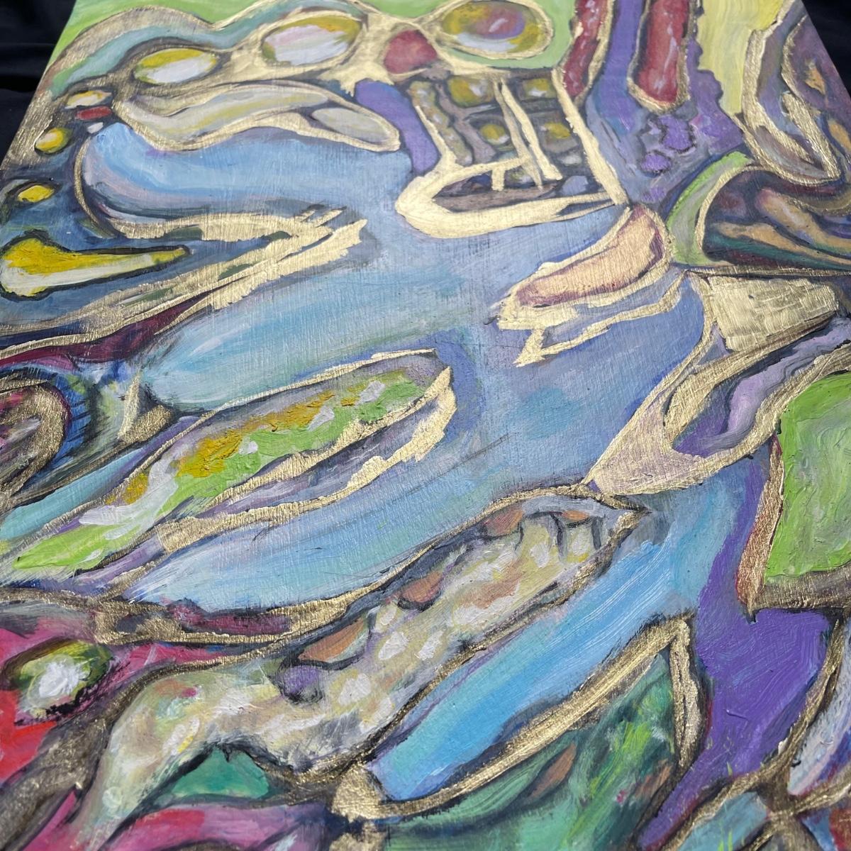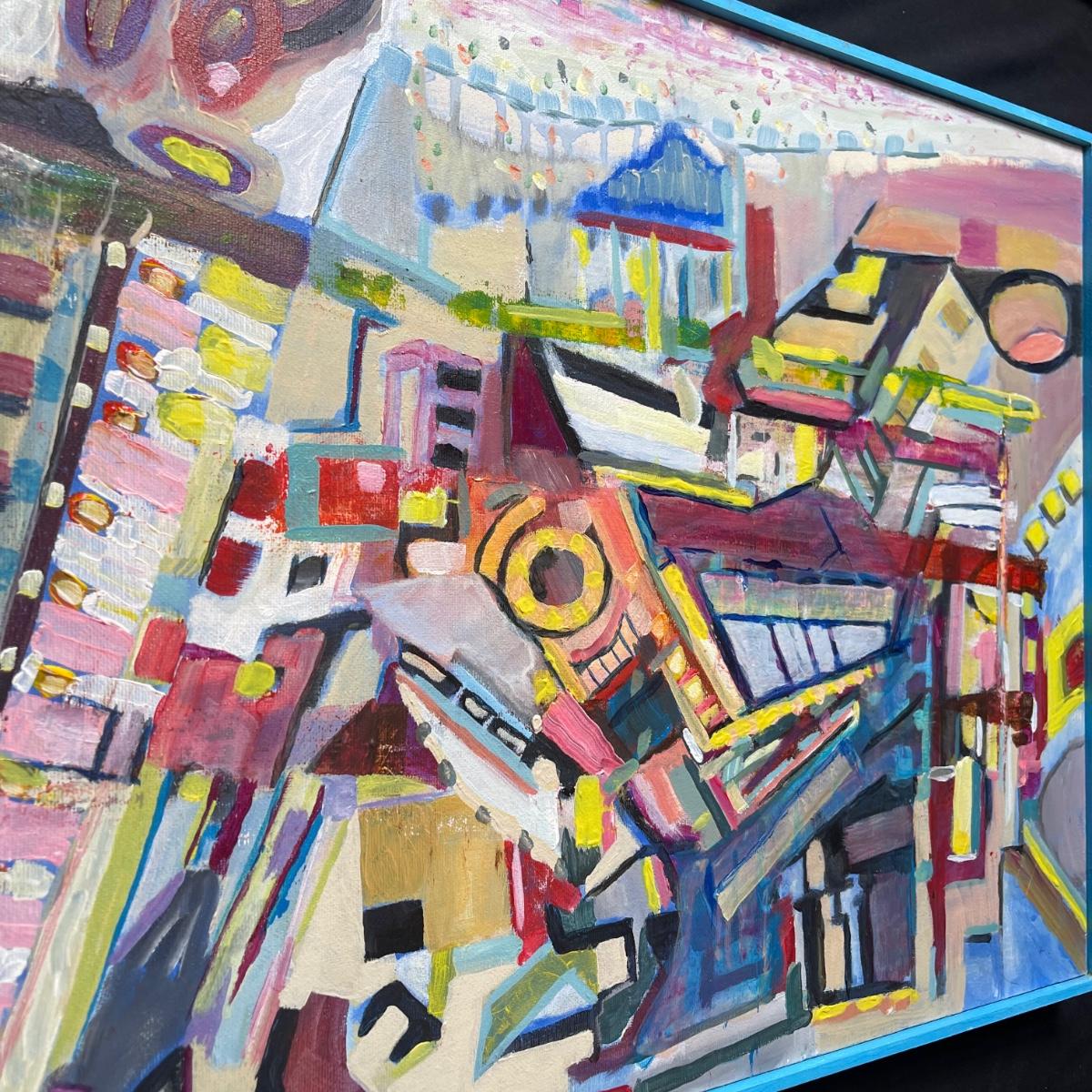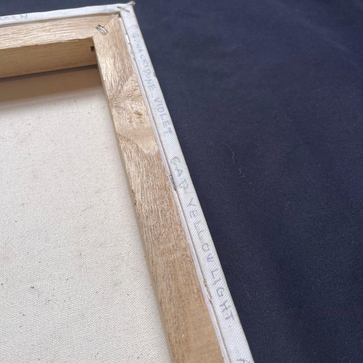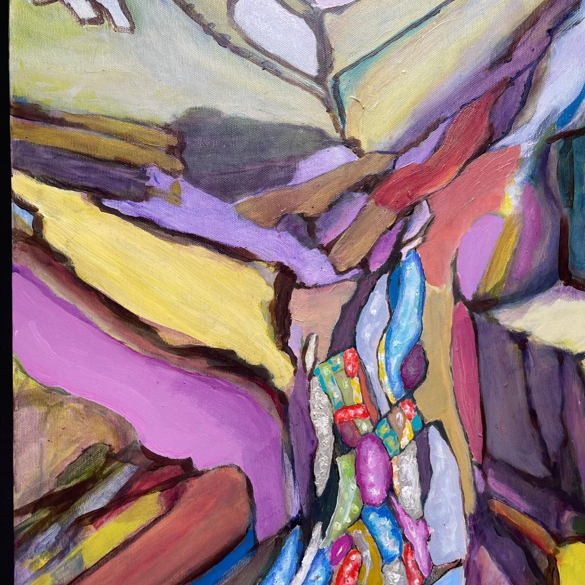 Three abstract paintings by Asheville artist Reginald “Ripp” Smith. The first painting is 20” x 26”, canvas, and numbered 37. Second is #47 measuring 18” x 24” and painted on wood. The third painting is 18.5” x 24.5”, canvas, and numbered 16.