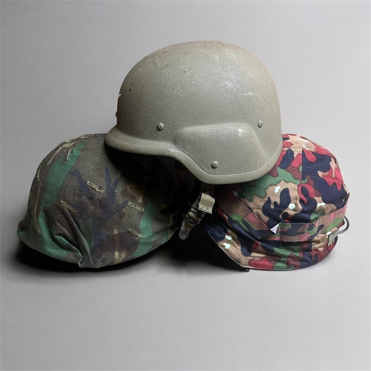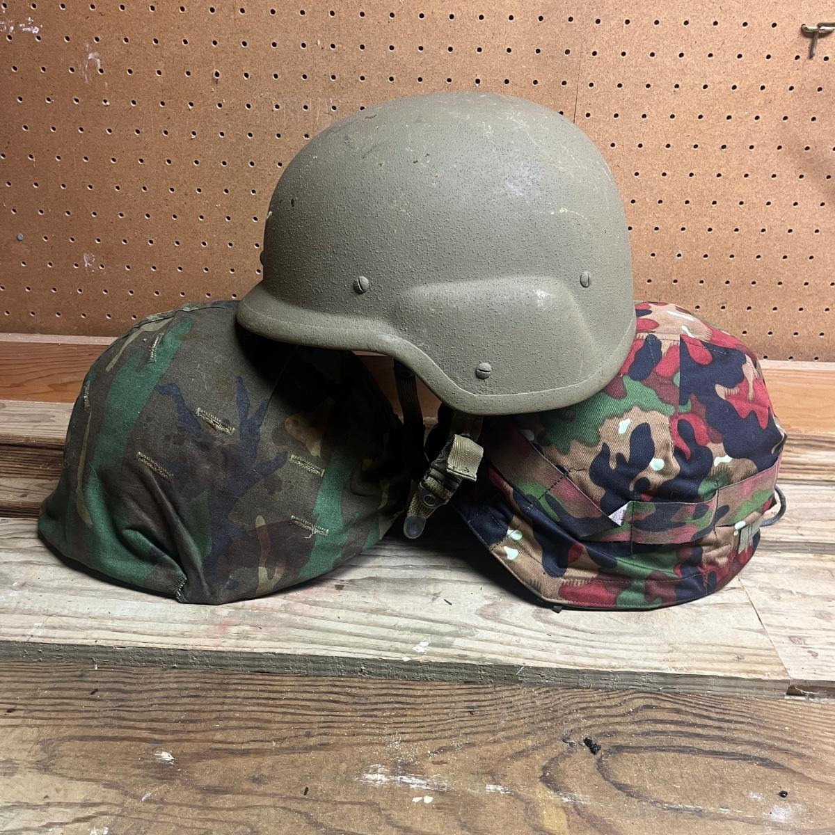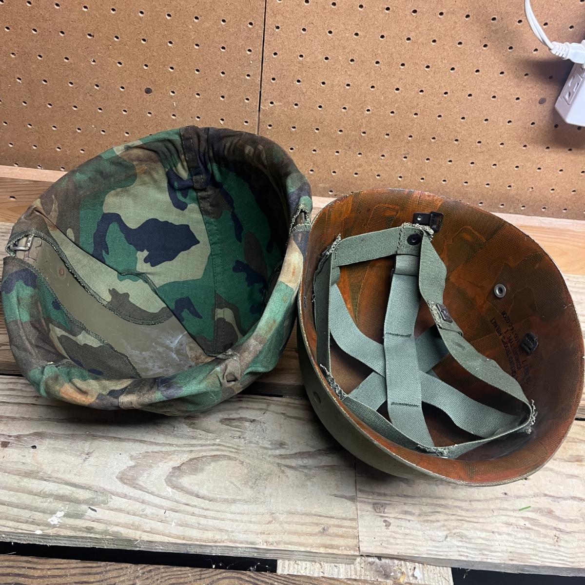 Lot includes three army helmets with one marked liner ground troops combat type 1 1973.