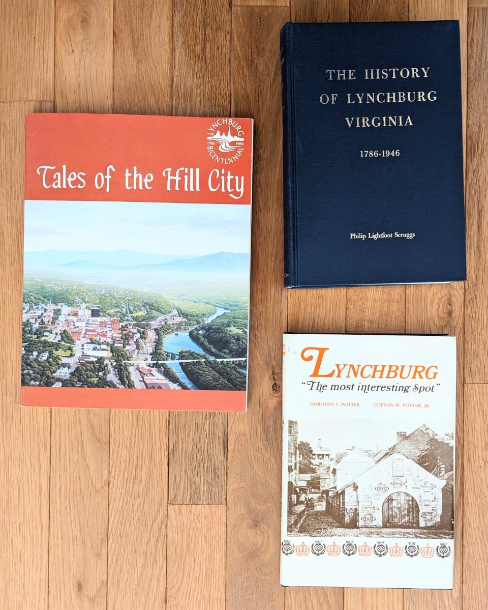 Trio of books Lynchburg VA history-Tales of the Hill City, Lynchburg-the most interesting spot, The History of Lynchburg 1786-1946