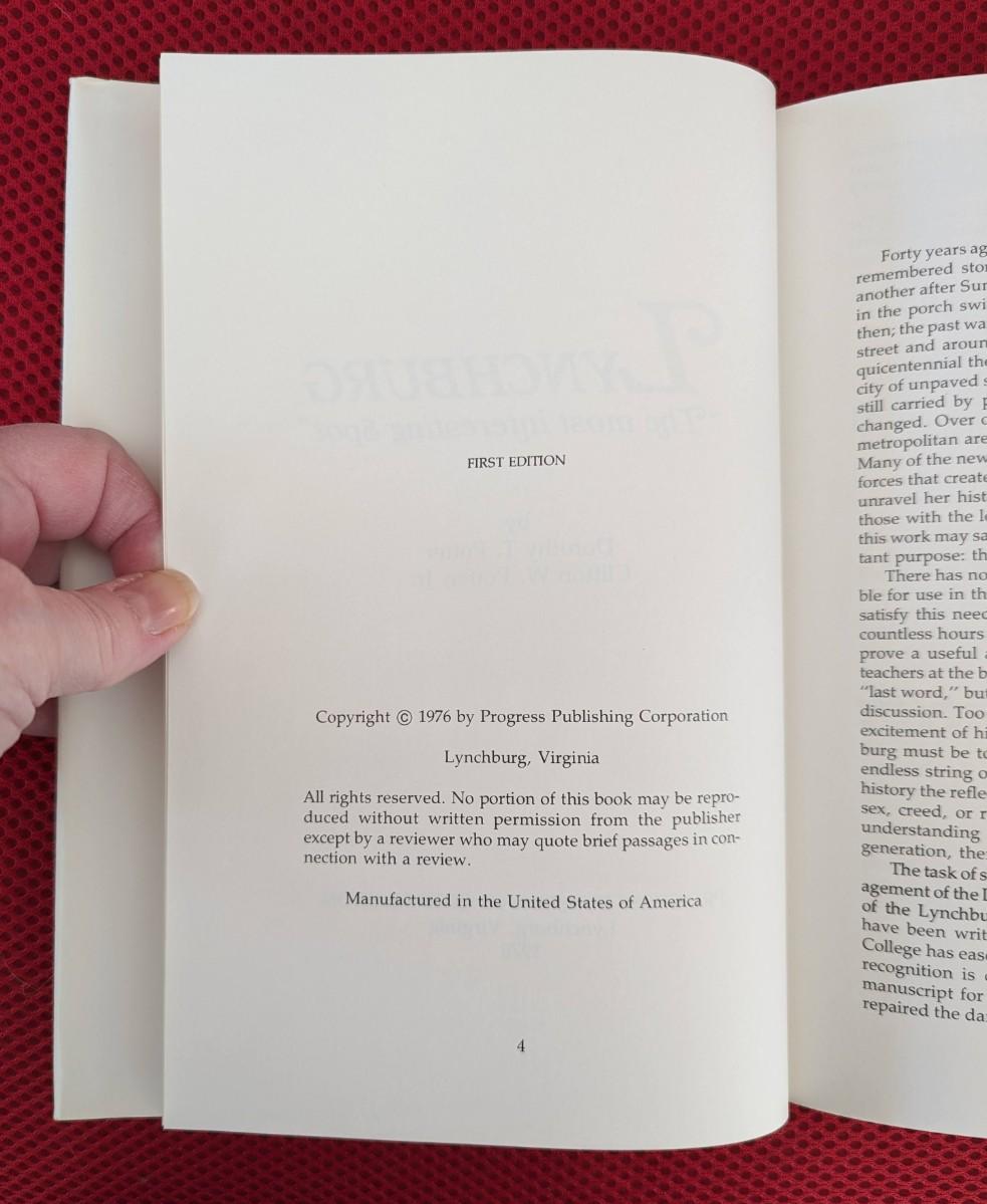 Lynchburg "The most interesting spot". Slgned by authors Dorothy T. Potter and Clifton W. Potter Jr in 1976. First edition. Published in 1976. Hardcover with dustjacket